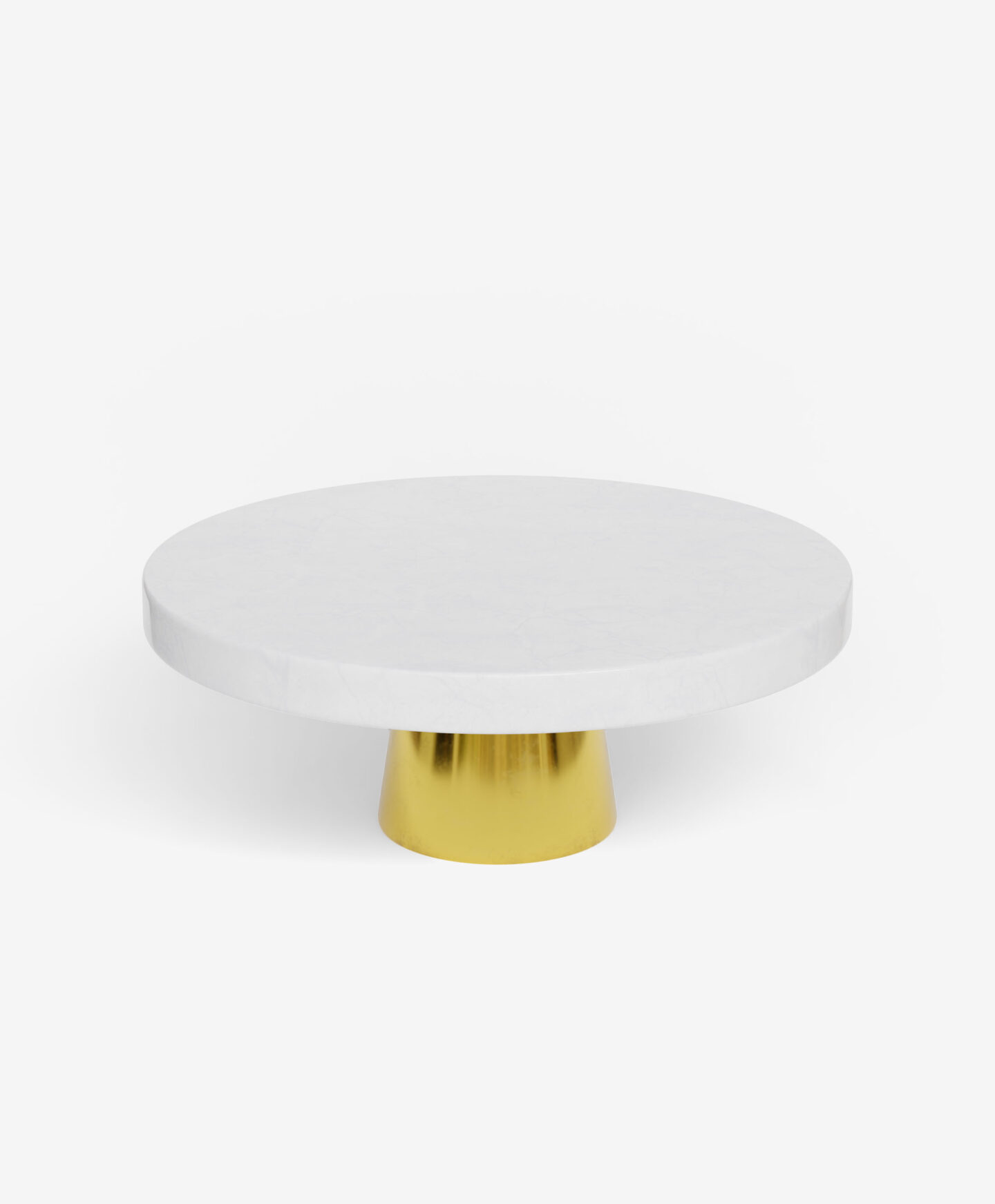 Pladanj od mramora na postolju idealan je za posluživanje deserata i sitnih zalogaja. Elegantan je detalj na blagdanskom stolu, zahvaljujući spoju kamene ploče i metalnog postolja, a podignut oblik štedi prostor. Idealan je za kolače, muffine i voće.