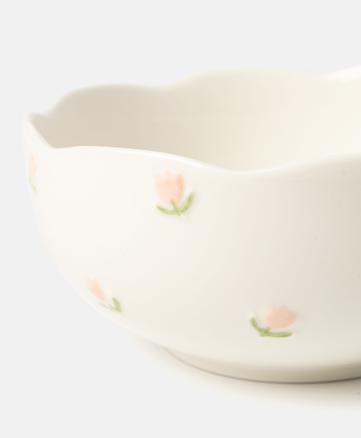 Porculanska zdjela za salatu s nježnim motivom tulipana istaknut će se u vašoj kuhinji. Njeni ukrasni, nepravilno oblikovani rubovi čine je zaista jedinstvenom. U ponudi su i tanjuri i šalice istog dizajna.