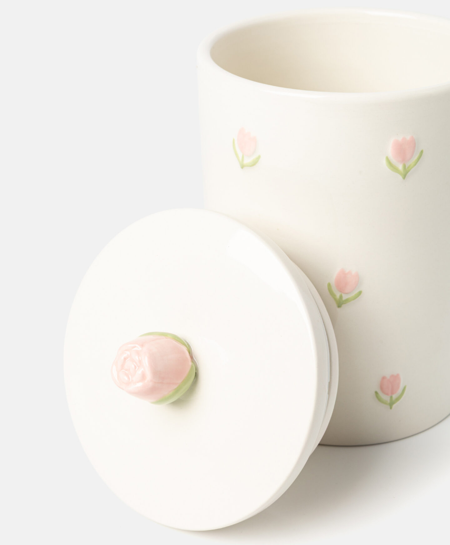 Posuda od dolomita s poklopcem prekrasan je ukras za vašu kuhinju. Suptilne boje i nježan motiv uklopit će se u većinu stilova uređenja. Čvrst poklopac s ručkom u obliku tulipana osigurava da će posuda dulje očuvati svježinu namirnica, poput zrna kave ili čaja. Idealna je i za domaće kekse i druge poslastice.