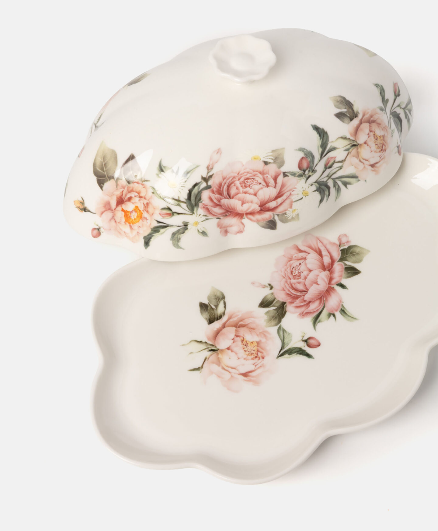 Posuda za maslac s cvjetnim motivom savršeno pristaje uz ostalo posuđe iz najnovije kolekcije. Izrađena je od New Bone porculana pa je prekrasne kremasto bijele boje i ima suptilan sjaj. Cvjetni motiv s božurima donosi proljeće na vaš stol! Svestrana je i elegantna, idealna za svakodnevnu upotrebu kao i za posebne prigode.