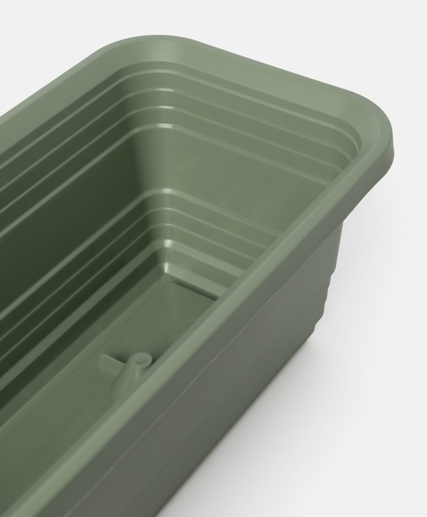Pravokutna posuda za biljke odličan je izbor sve koji žele uzgajati biljke na balkonu, terasi ili vrtu. Izduženi oblik tegle pruža dovoljno prostora za nekoliko sadnica ili jednu veću biljku, što maksimizira iskorištenost prostora. Tegla je izrađena od izdržljivog materijala pa je lagana i otporna na vremenske uvjete.