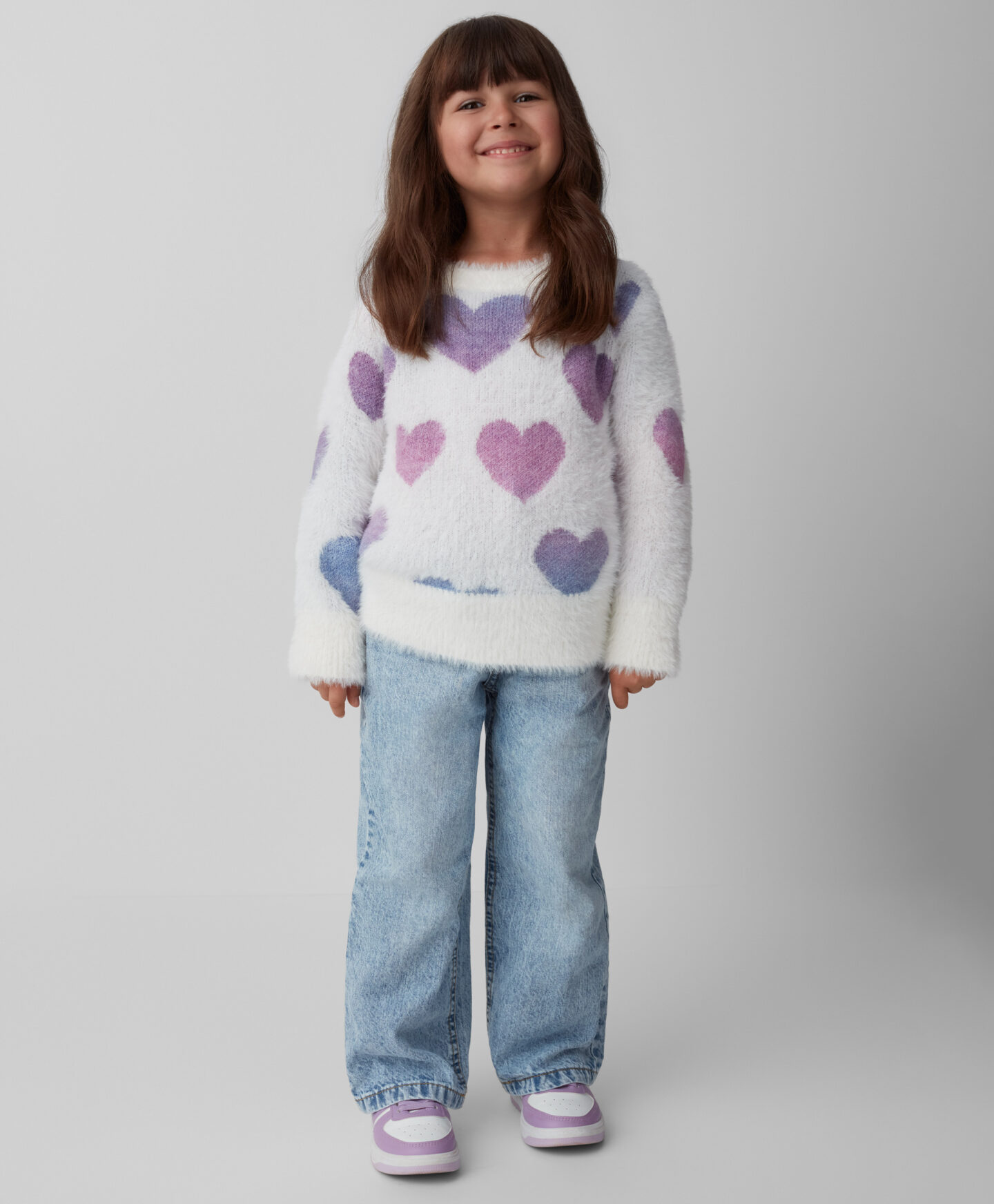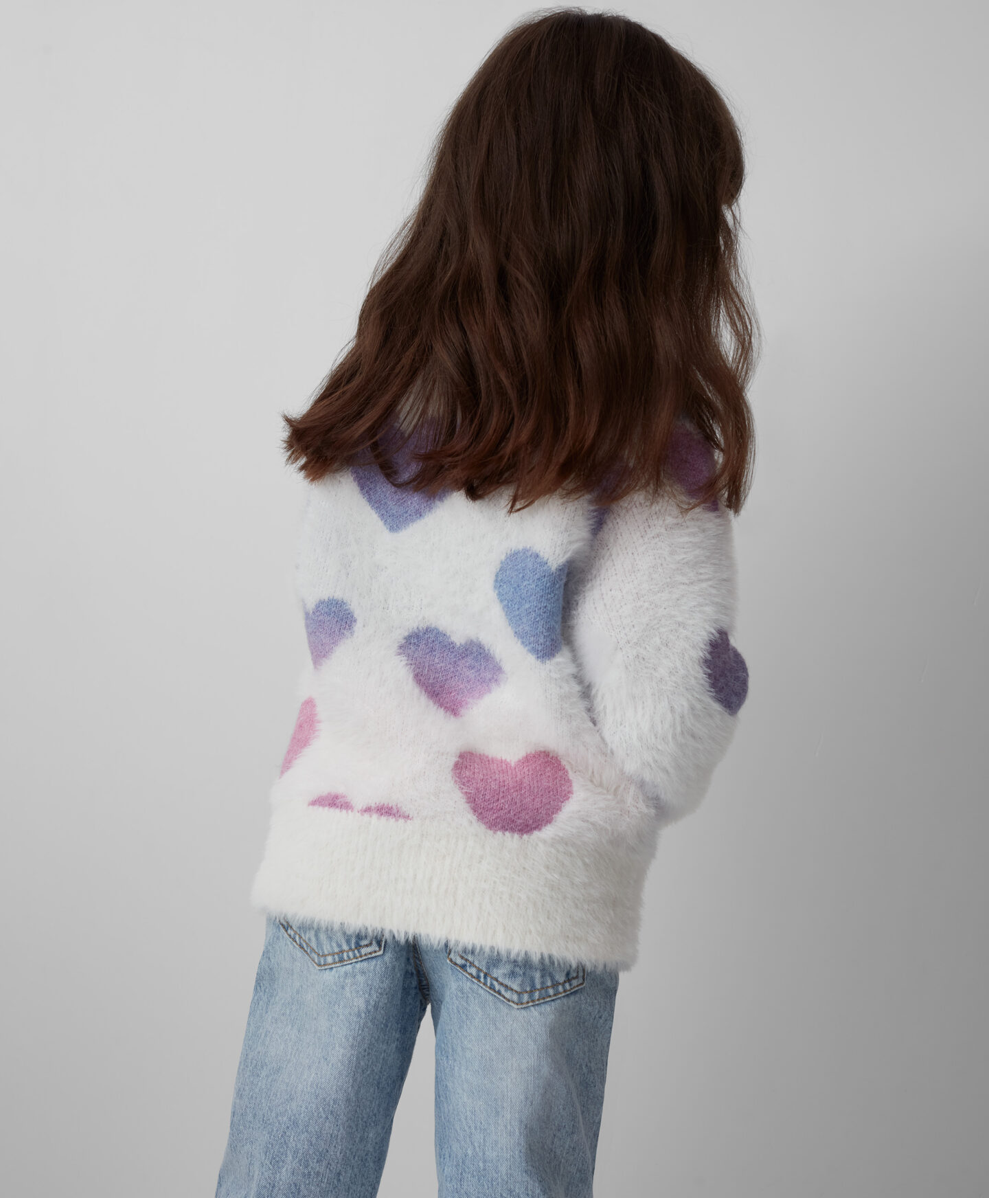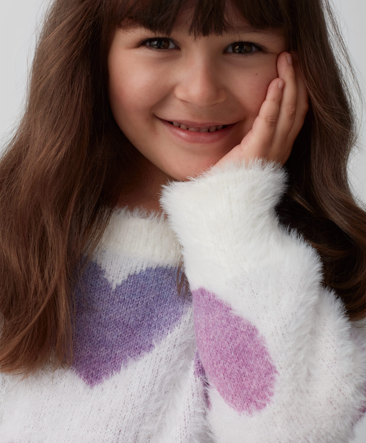 Pulover s motivom srca za djevojčice stvoren je za male ljubiteljice udobnosti i topline. Krasi ga neodoljiv dizajn, a uz to je i mekan i ugodan na dodir. Odličan je izbor za hladne jesenske i zimske dane, savršen za vrtić, školu ili slobodno vrijeme. Odlično pristaje uz traperice i tajice.