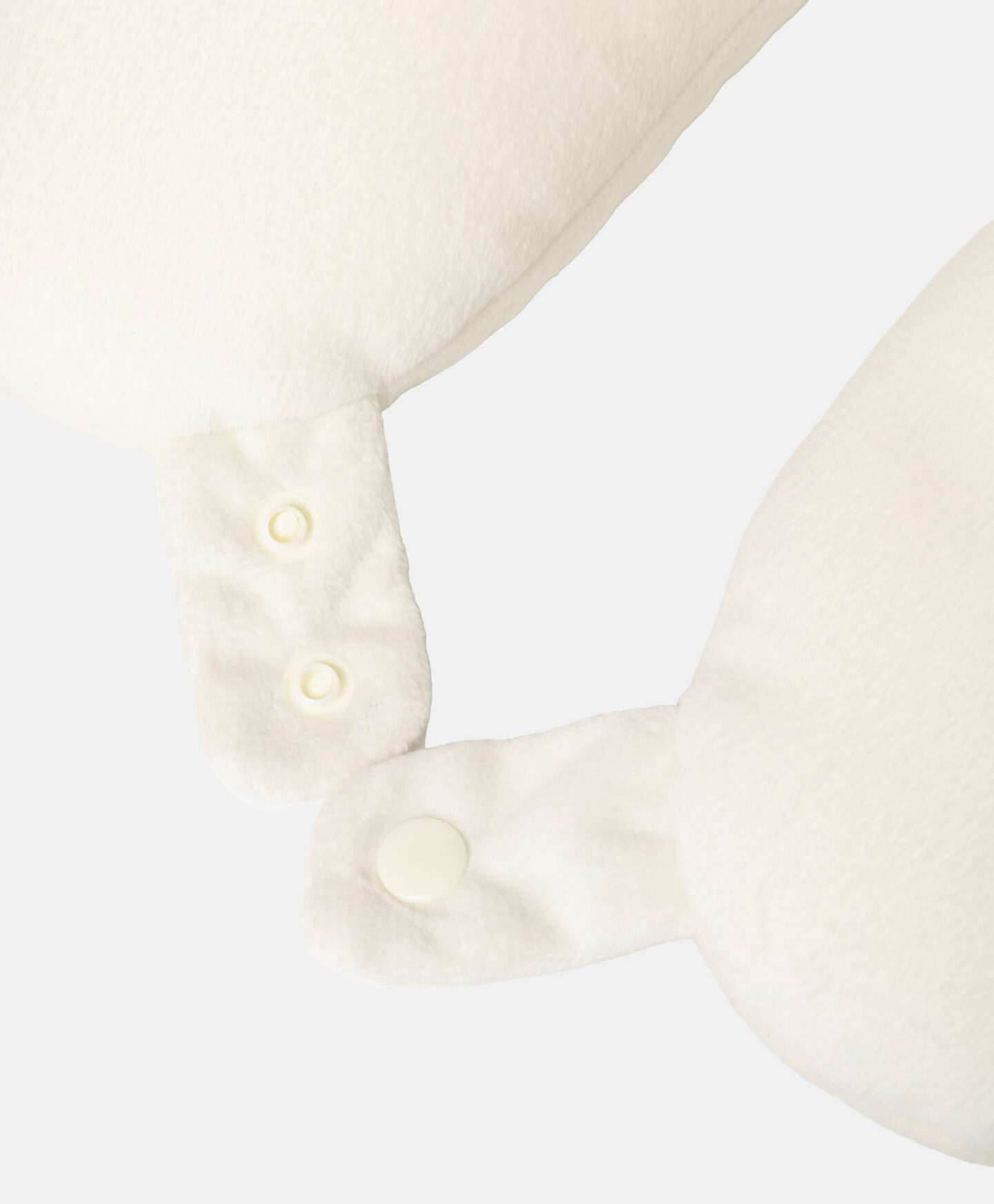 Bijeli putni jastuk neizostavan je dodatak za duga putovanja! Posebno dizajniran oblik podupire vrat i sprječava padanje glave u stranu. Navlaka je izrađena od materijala koji je nježan prema koži.