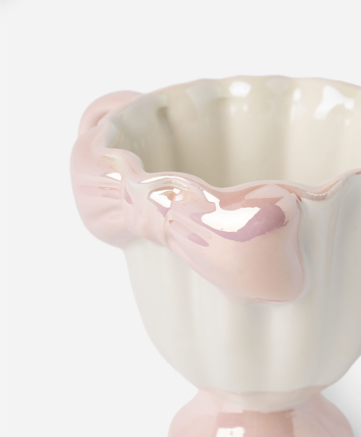 Šalica s mašnom elegantan je dodatak vašoj kolekciji posuđa. Zahvaljujući sedefastom efektu prekrasno reflektira svjetlost. Dekorativna mašna čini je neodoljivom pa je savršen izbor za svakodnevno uživanje u omiljenim pićima ili odlična ideja za poklon.