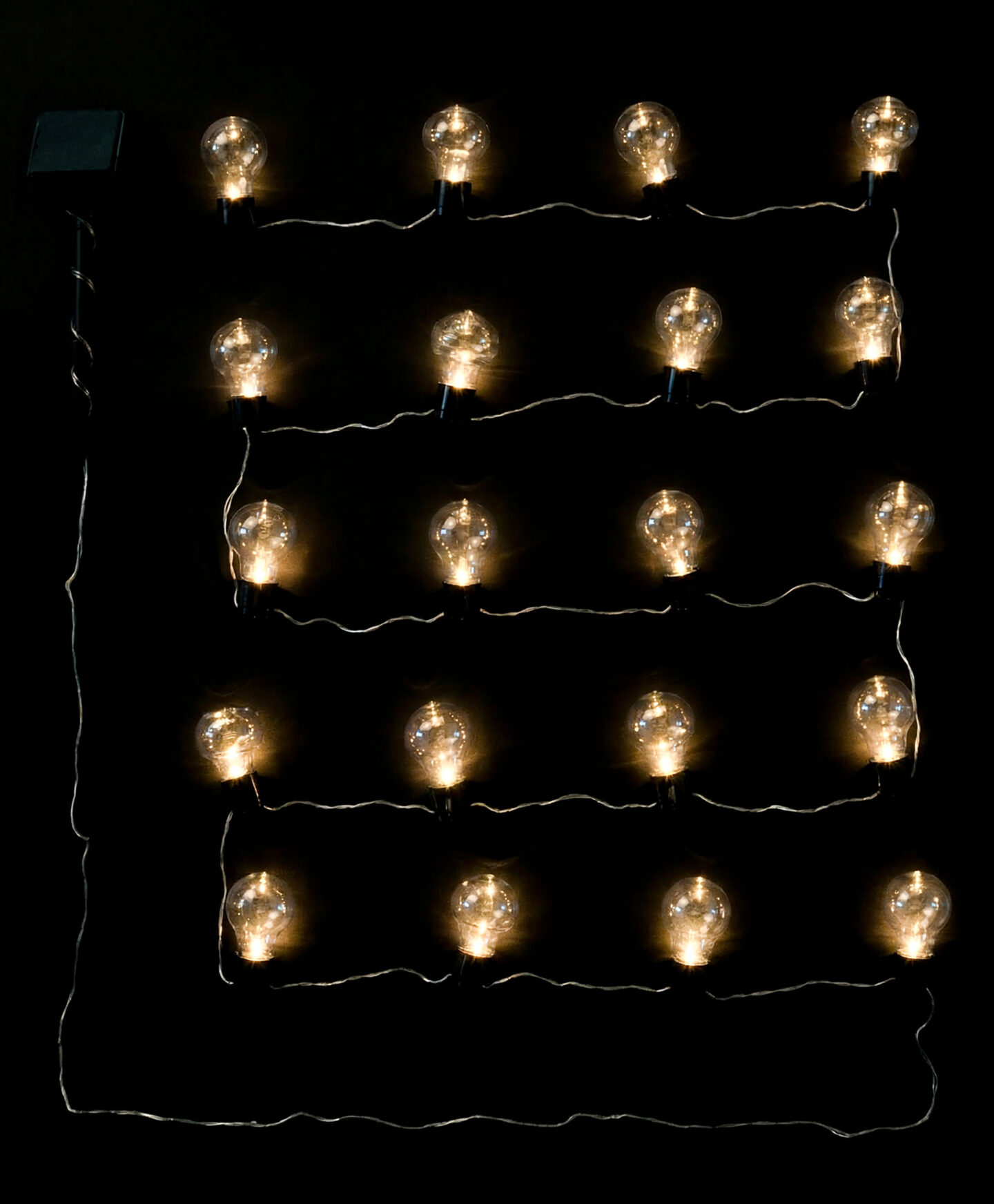 Solarne lampice s 20 LED žarulja rade bez dodatnih kablova i baterija zahvaljujući ugrađenom solarnom panelu. Lanac se sastoji od 20 ukrasnih LED žarulja tradicionalnog izgleda koje stvaraju magičnu, ugodnu atmosferu idealnu za večernja okupljanja. Žarulje se automatski pale u sumrak i gase u zoru, pružajući vam osvjetljenje tijekom cijele noći.