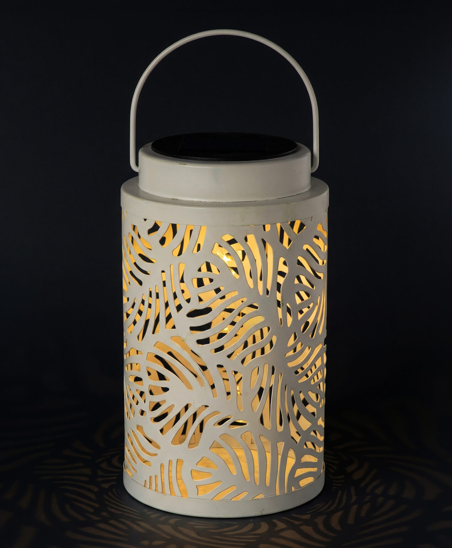 Bijeli solarni lampion neizostavan je dodatak za svaki balkon ili terasu. Zahvaljujući ugrađenoj solarnoj ploči, lampion se puni tijekom dana i automatski osvjetljava prostor prilikom zalaska sunca. Precizni izrezi omogućuju svjetlu da stvori prekrasne mozaik motive na podu ili zidovima.
