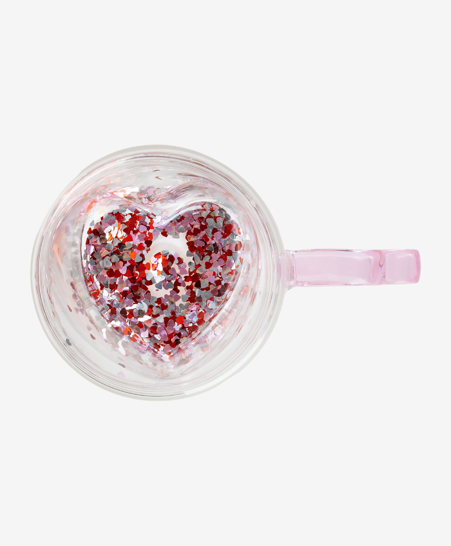 Šalica od borosilikatnog stakla s ručkom u obliku srca ima dvostruku stijenku i ispunjena je svjetlucavim šljokicama. Savršena je za uživanje u jutarnjoj kavi ili čaju, a ujedno je i jedinstven poklon za voljenu osobu. Izrađena je od izdržljivog stakla pa je otporna na svakodnevnu upotrebu i jednostavna za održavanje.