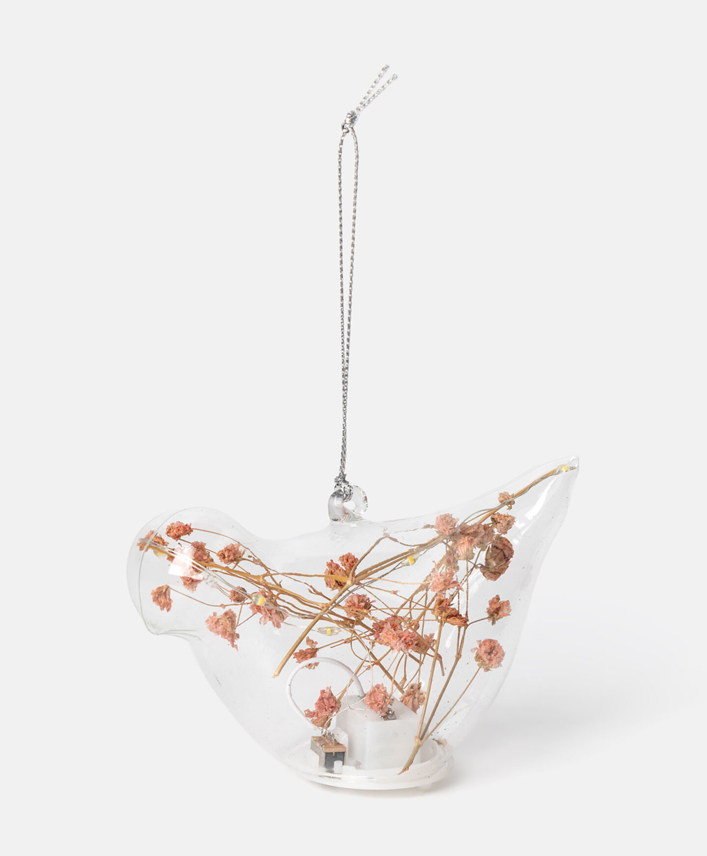 Stakleni LED ukras u obliku ptice s cvijećem stvorit će čarobnu atmosferu u vašem domu svake večeri. Izrađen s pažnjom na detalje, oduševljava svojim izgledom i nježnim LED svjetlom. U ponudi su razni dizajni.