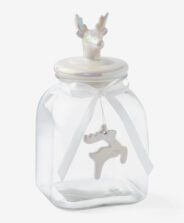 Staklenka s keramičkim poklopcem u obliku jelena savršen je dodatak vašoj kuhinji. U njoj možete čuvati domaće medenjake ili mirisne začine. Zahvaljujući svom jedinstvenom obliku, osvježit će svaki prostor.