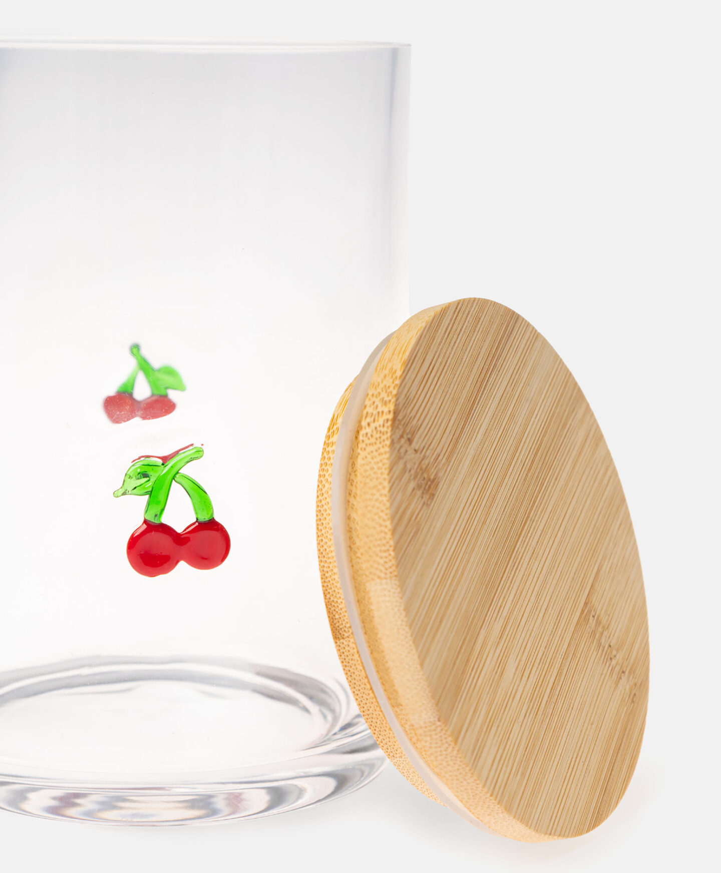 Staklenka s poklopcem i trešnjama dekorativna je i vrlo praktična. Hermetički bambusov poklopac osigurava da vaše namirnice dulje ostaju svježe. Zapremnina od 700 ml savršena je za kavu ili začine. Staklenka je izdržljiva, otporna na ogrebotine i jednostavna za čišćenje.