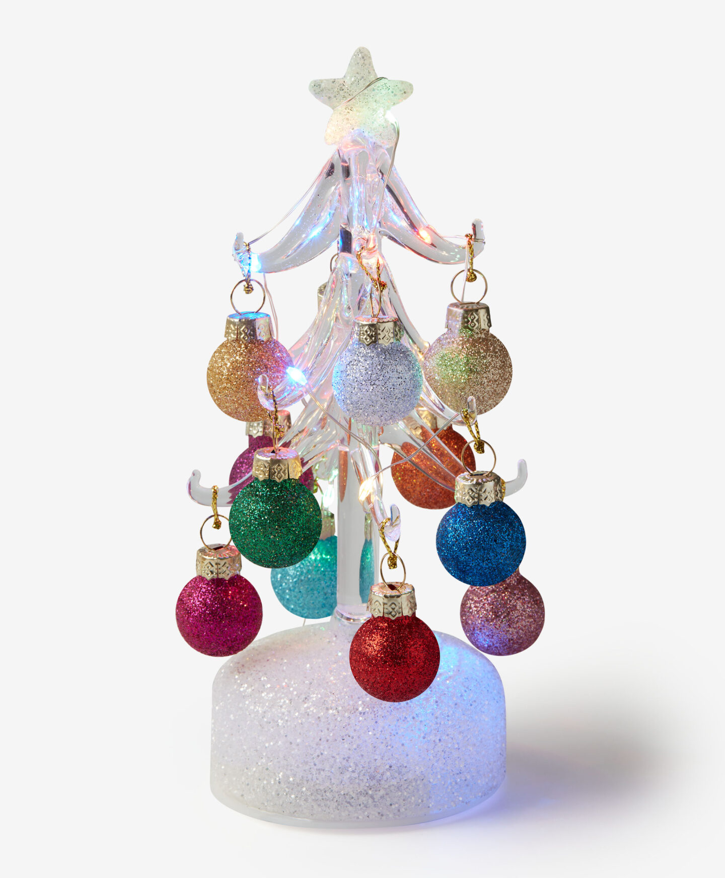 Stakleno LED božićno drvce s kuglicama malo je umjetničko djelo koje spaja eleganciju stakla i čaroliju svjetla. Nježan oblik s ugrađenom rasvjetom obasjava šarene kuglice, stvarajući bajkoviti ugođaj. Ova jedinstvena dekoracija izgledat će predivno na blagdanskom stolu ili kao topao detalj u bilo kojoj sobi.