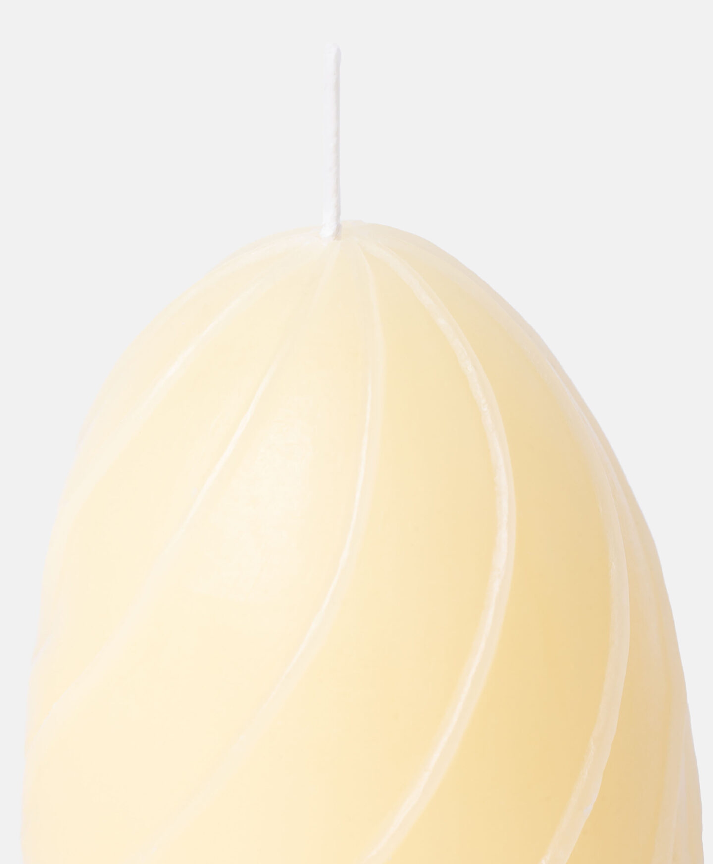 Žuta svijeća u obliku jajeta savršena je za Uskrs. Izgledat će prekrasno uz dekorativne grane ili svježe cvijeće. Dugo gori i idealan je poklon za svakoga tko voli jedinstvene dekoracije.