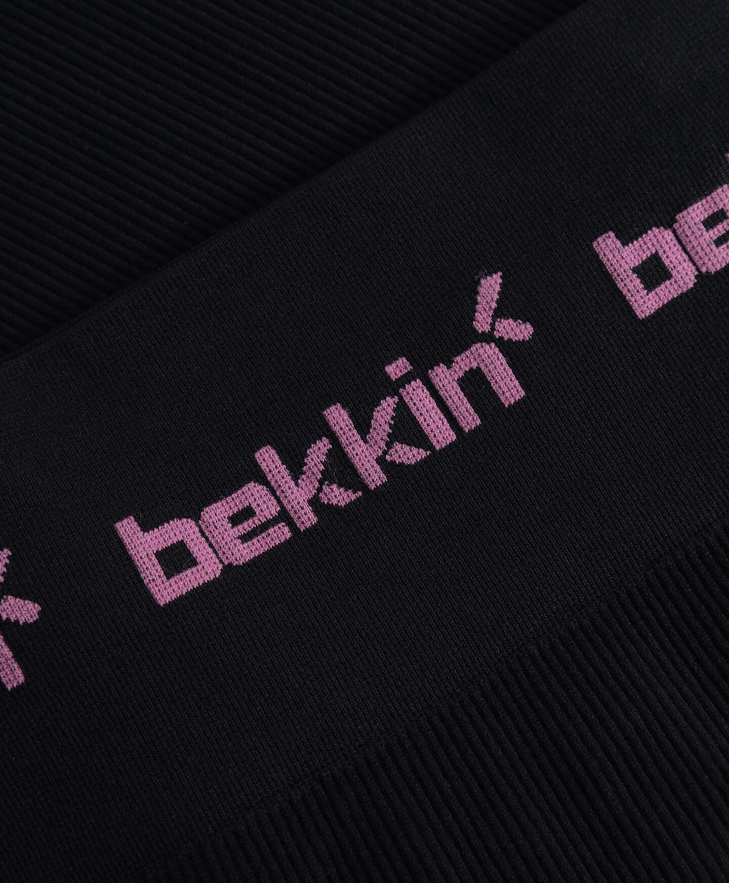 Crne tajice Bekkin za djevojčice praktičan su i moderan odjevni komad. Neodoljiva boja i nježne prugice oduševit će svaku ljubiteljicu fizičke aktivnosti. Bešavni dizajn minimizira rizik od iritacija pa su tajice idealne za razne vrste treninga: ples, gimnastiku ili igru na otvorenom.