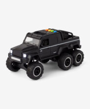 Crni terenski automobil dizajniran je za dinamičnu i uzbudljivu igru. Njegova čvrsta konstrukcija sa šest velikih kotača pruža stabilnost i mogućnost vožnje na raznim površinama, što djeci daje veliku slobodu u kreiranju staza i izazova. Baterije su uključene.