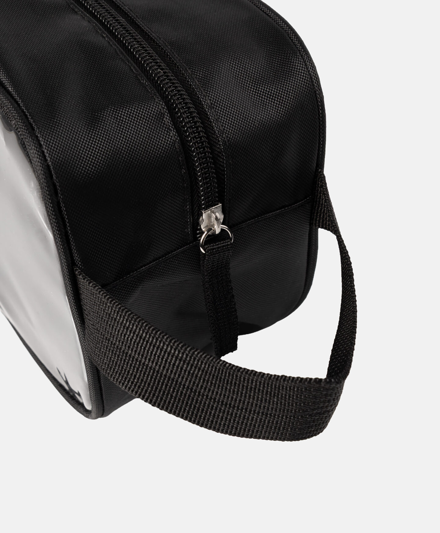 Crna toaletna torbica savršena je za svako putovanje. Prozirne stranice omogućuju vam brz pronalazak proizvoda koji tražite. Torbica je izrađena od visokokvalitetnog materijala pa štiti vašu prtljagu od eventualnog prolijevanja šampona ili drugih proizvoda.