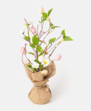 Ukras za stol s ružičastim cvijećem u jutenoj vrećici uljepšat će svaki prostor! Suptilna elegancija dekoracije, prirodne boje i detalji stvaraju prekrasan ugođaj. Možete je staviti i na kuhinjsku radnu površinu, komodu, prozorsku dasku ili kamin. Dostupna su dva dizajna.