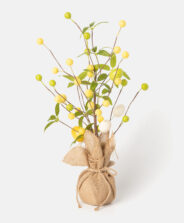 Ukras za stol sa žutim cvijećem u jutenoj vrećici uljepšat će svaki prostor! Suptilna elegancija dekoracije, prirodne boje i detalji stvaraju prekrasan ugođaj. Možete je staviti i na kuhinjsku radnu površinu, komodu, prozorsku dasku ili kamin. Dostupna su dva dizajna.