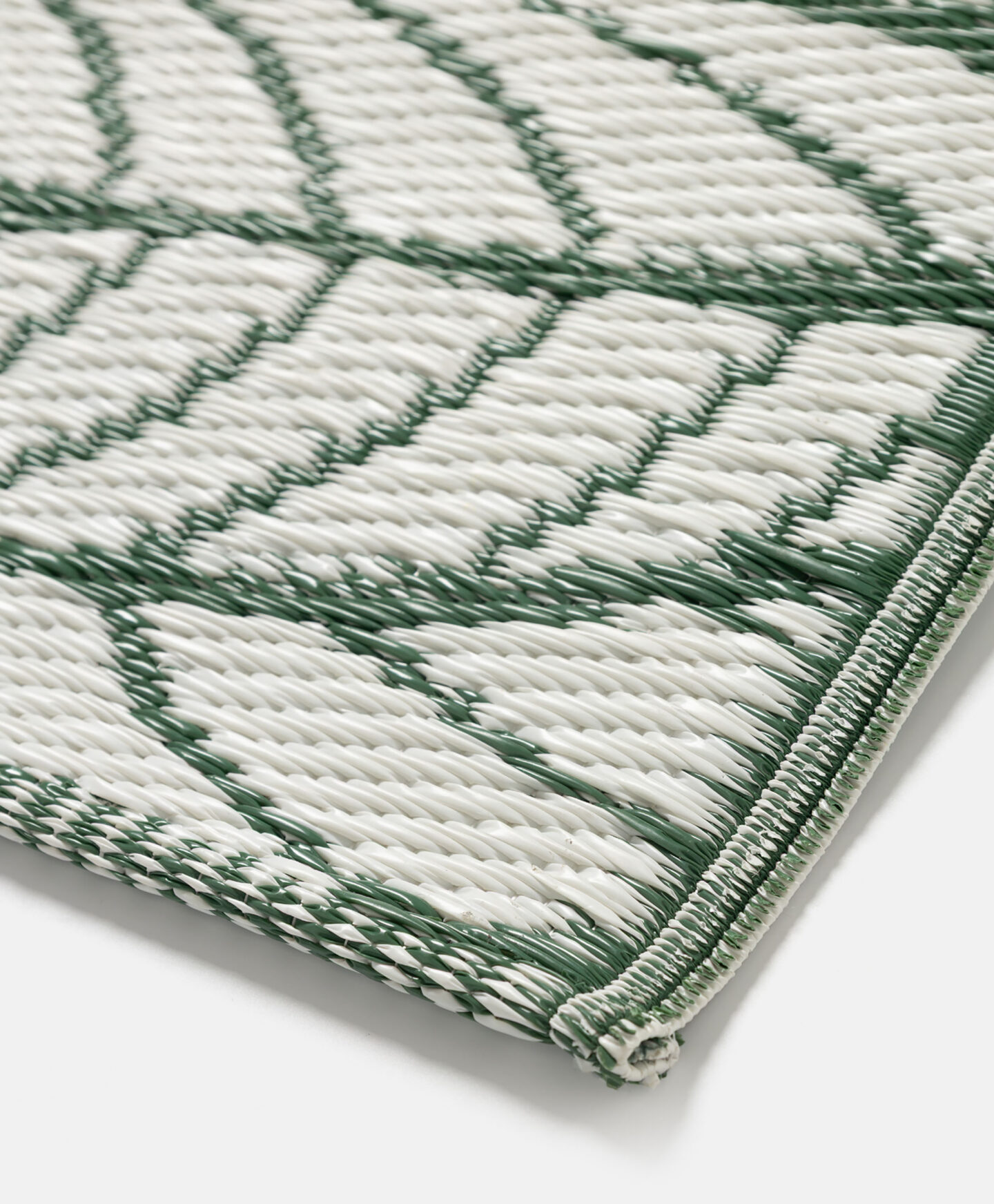 Vanjski tepih s motivom lišća bit će divna dekoracija vašem balkonu ili terasi. Prekrasan motiv lišća u prirodnim bojama savršeno se uklapa u vrtno uređenje. Materijal je izdržljiv i otporan na vremenske uvjete. Tepih je također jednostavan za održavanje. Savršen je poklon za svakog ljubitelja prirode koji želi uživati u udobnom i funkcionalnom vanjskom prostoru.