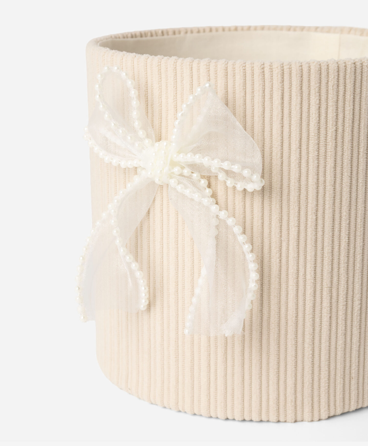 Velika okrugla kutija s mašnom elegantan je i praktičan dekorativni element za svaki interijer. Idealna je za pohranu predmeta poput kozmetike ili malih dodataka. Dekorativna mašna čini je neodoljivim i modernim ukrasom polici, komodi ili stolu. Nema poklopac pa možete lako pristupiti njezinom sadržaju, što je vrlo korisno za svakodnevnu uporabu.