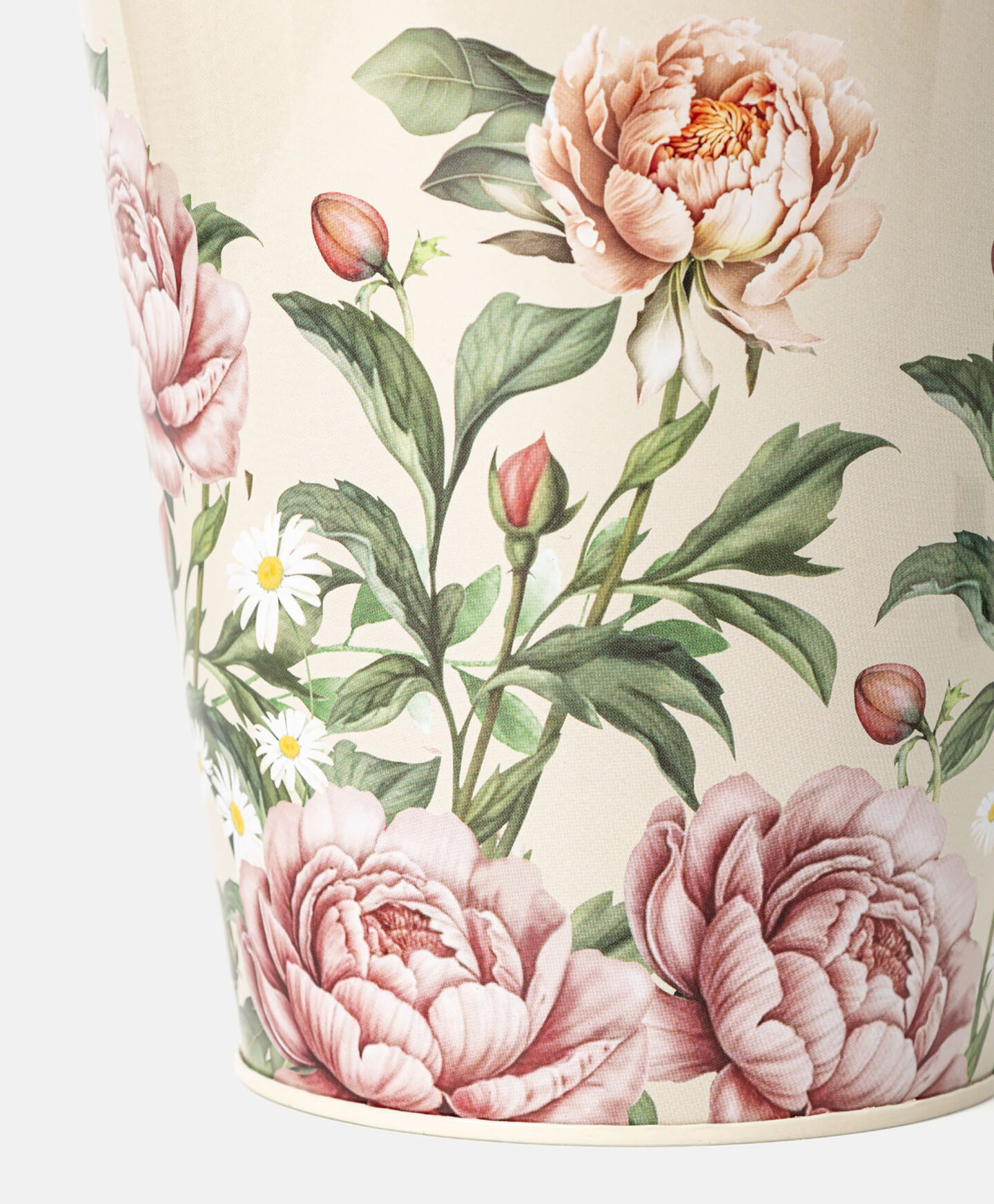 Viseća ukrasna tegla s motivom cvijeća i rebrastim stijenkama privlači pažnju svojim proljetnim dizajnom. Praktična kuka omogućuje vam da je postavite na ogradu balkona ili pregradu, čime se maksimalno iskorištava raspoloživi prostor. Metalna konstrukcija je izdržljiva, otporna na koroziju, sunce i vremenske uvjete, što jamči dugotrajnu upotrebu. U ponudi su dostupni razni motivi.