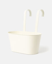 Bijela viseća posuda za biljke s rebrastim stijenkama osvojit će vas svojim proljetnim dizajnom. Praktične kuke za vješanje omogućuju vam da posudu za cvijeće postavite na balkonsku ogradu ili pregradu, čime izvrsno iskorištavate prostor. U ponudi su dostupni različiti motivi.