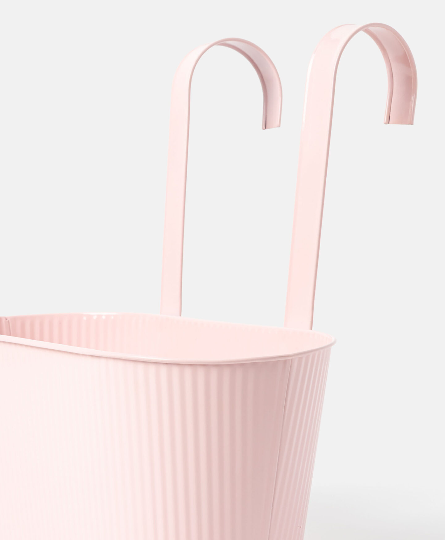 Ružičasta viseća posuda za biljke s rebrastim stijenkama osvojit će vas svojim proljetnim dizajnom. Praktične kuke za vješanje omogućuju vam da posudu za cvijeće postavite na balkonsku ogradu ili pregradu, čime izvrsno iskorištavate prostor. U ponudi su dostupni različiti motivi.