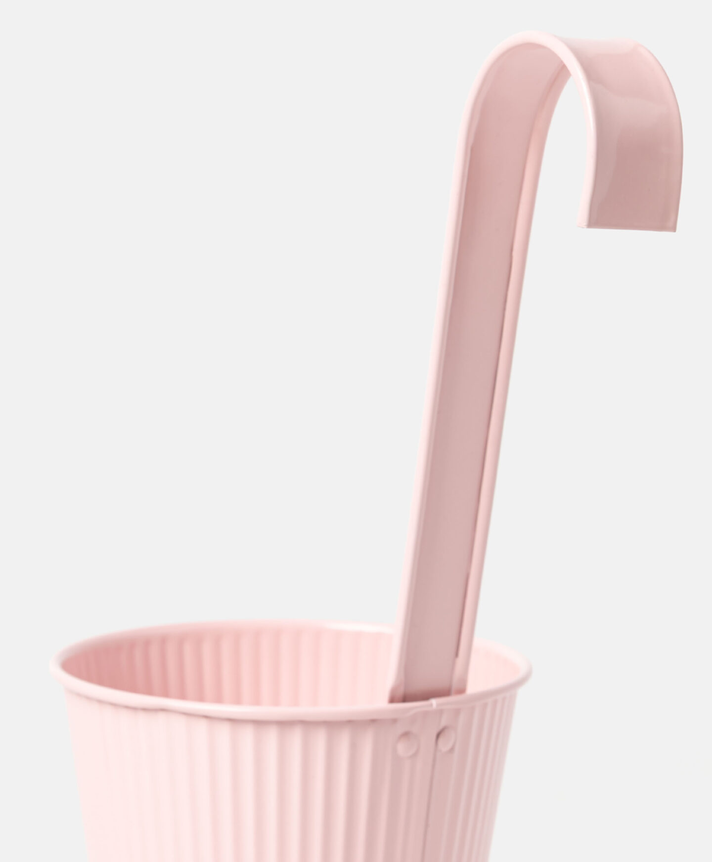 Ružičasta viseća ukrasna tegla s rebrastim stijenkama privlači pažnju svojim proljetnim dizajnom. Praktična kuka omogućuje vam da je postavite na ogradu balkona ili pregradu, čime se maksimalno iskorištava raspoloživi prostor. Metalna konstrukcija je izdržljiva, otporna na koroziju, sunce i vremenske uvjete, što jamči dugotrajnu upotrebu. U ponudi su dostupni razni motivi.