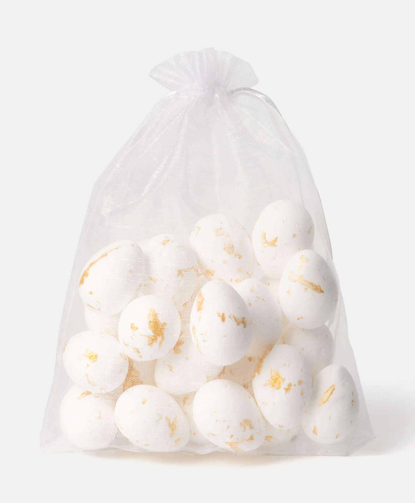 Komplet bijelih jaja od stiropora veličine 3,5 cm u vrećici sadrži 25 laganih, pjegavih uskršnjih jaja – odličan odabir za razne DIY projekte. Savršena su kao dekoracija za stol, postavljena među posuđe ili kao dio središnjeg ukrasa za stol. Također ih možete staviti u posude za cvijeće, uskrsne košare ili ih koristiti tijekom lova na pisanice za najmlađe članove obitelji. Dostupni su različiti dizajni.