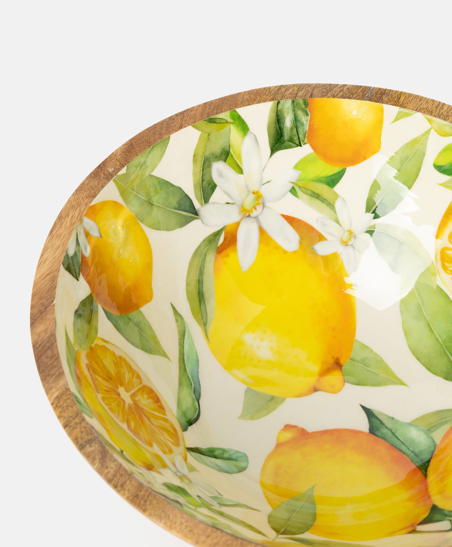 Zdjela za posluživanje od drva manga ističe se osvježavajućim motivom limuna. Prirodni materijal i sunčane boje probudit će vaš apetit i pretvorit vaše obroke u još veći užitak! U njoj možete pripremiti salatu te držati ili posluživati voće. Zdjela je izdržljiva i jednostavna za čišćenje – savršena za svakodnevnu upotrebu.