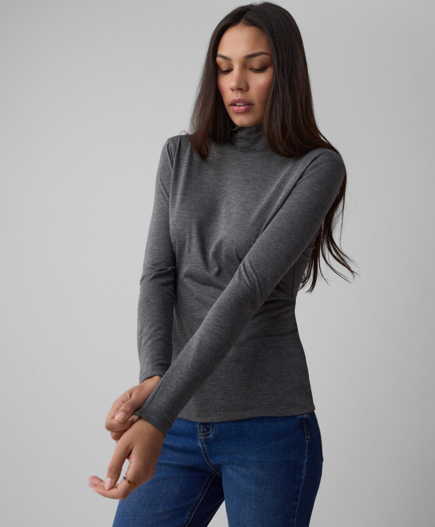 Ženska dolčevita dugih rukava savršena je za hladno vrijeme. Odlična je za nošenje ispod sakoa ili pulovera. Pristaje i uz traperice i elegantne hlače. Univerzalna boja izvrsno se uklapa u zimski ugođaj i omogućuje vam stvaranje mnogih upečatljivih odjevnih kombinacija.