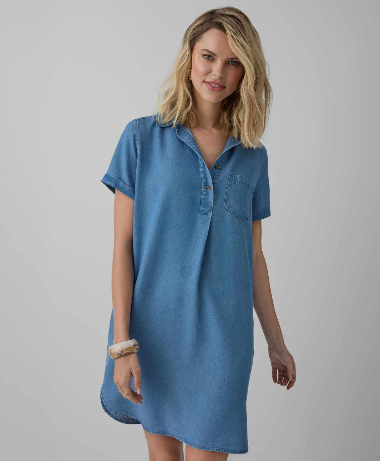 Ženska haljina od 100% liocela udoban je i svestran odjevni komad. Ovratnik čini haljinu savršenom za mnoge prigode – od posla do druženja s društvom. Meka i nježna tkanina ne iritira kožu i osigurava nenadmašnu udobnost pri nošenju. Liocel je lagan, prozračan i prilagođava se tjelesnoj temperaturi. Univerzalni kroj optički stanjuje figuru i prilagođava se različitim tipovima tijela. Haljina je jednostavna za održavanje i otporna na pranje i glačanje.