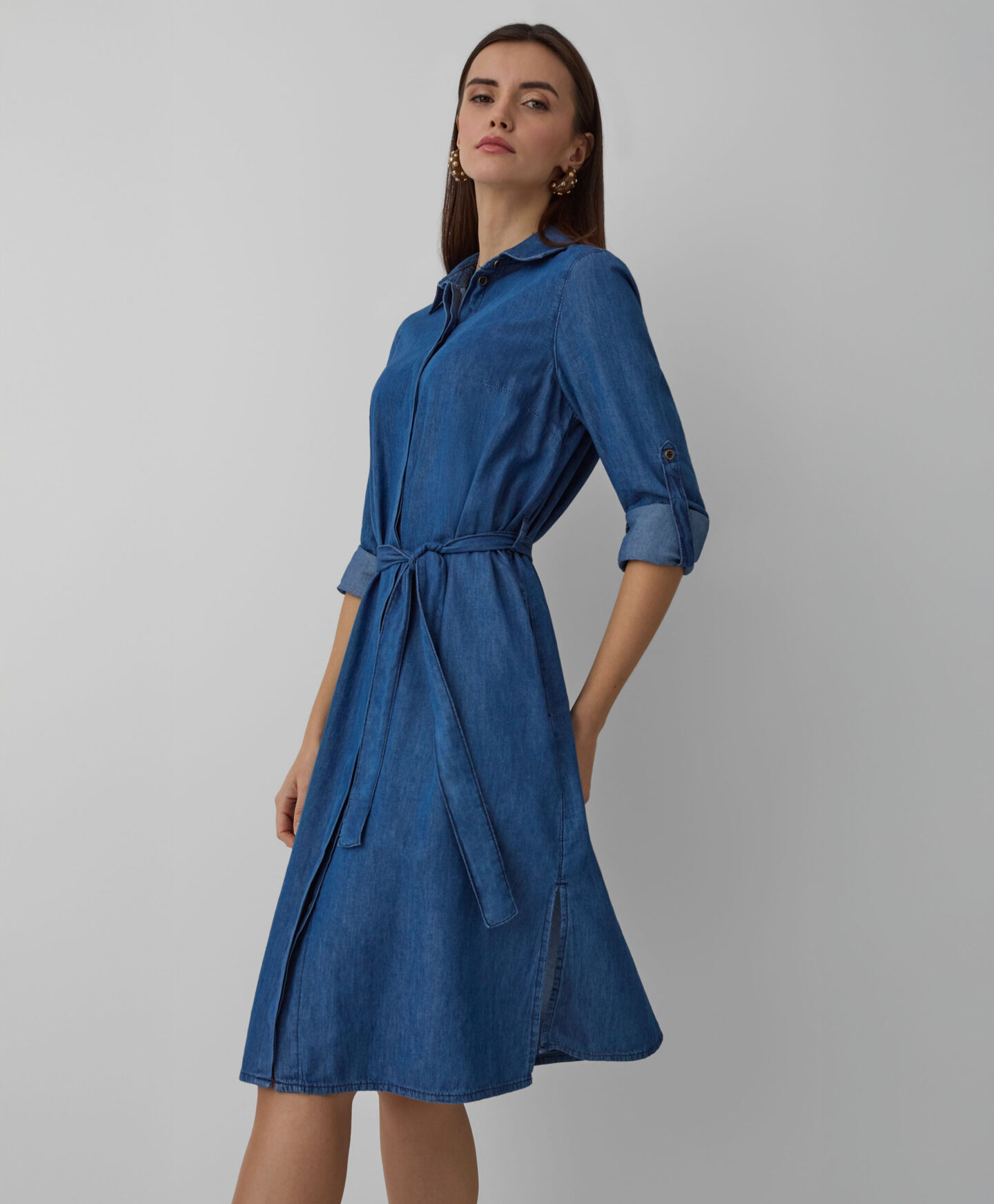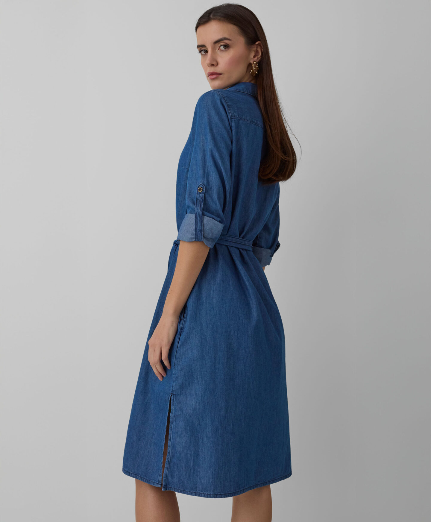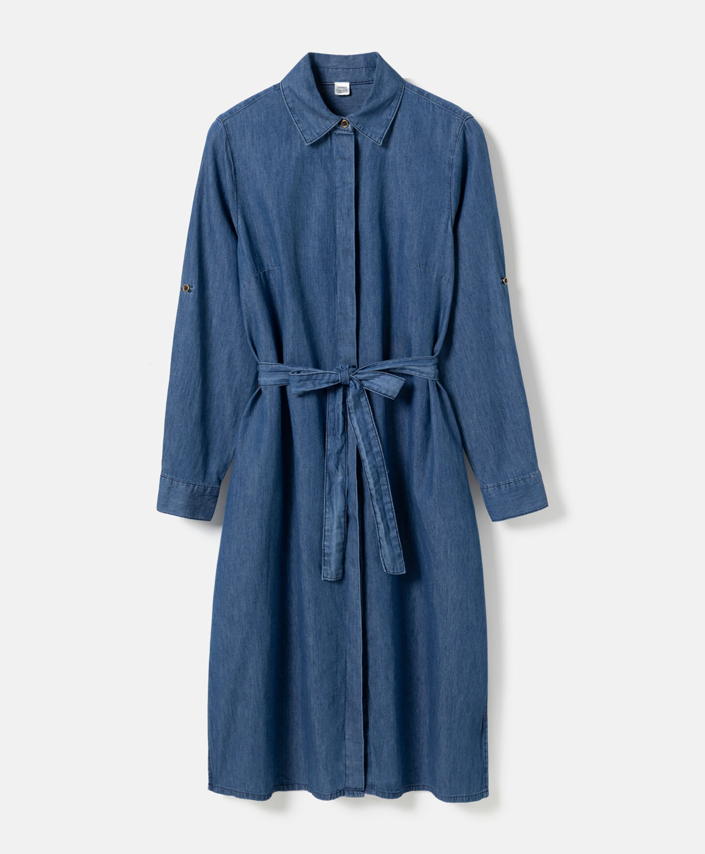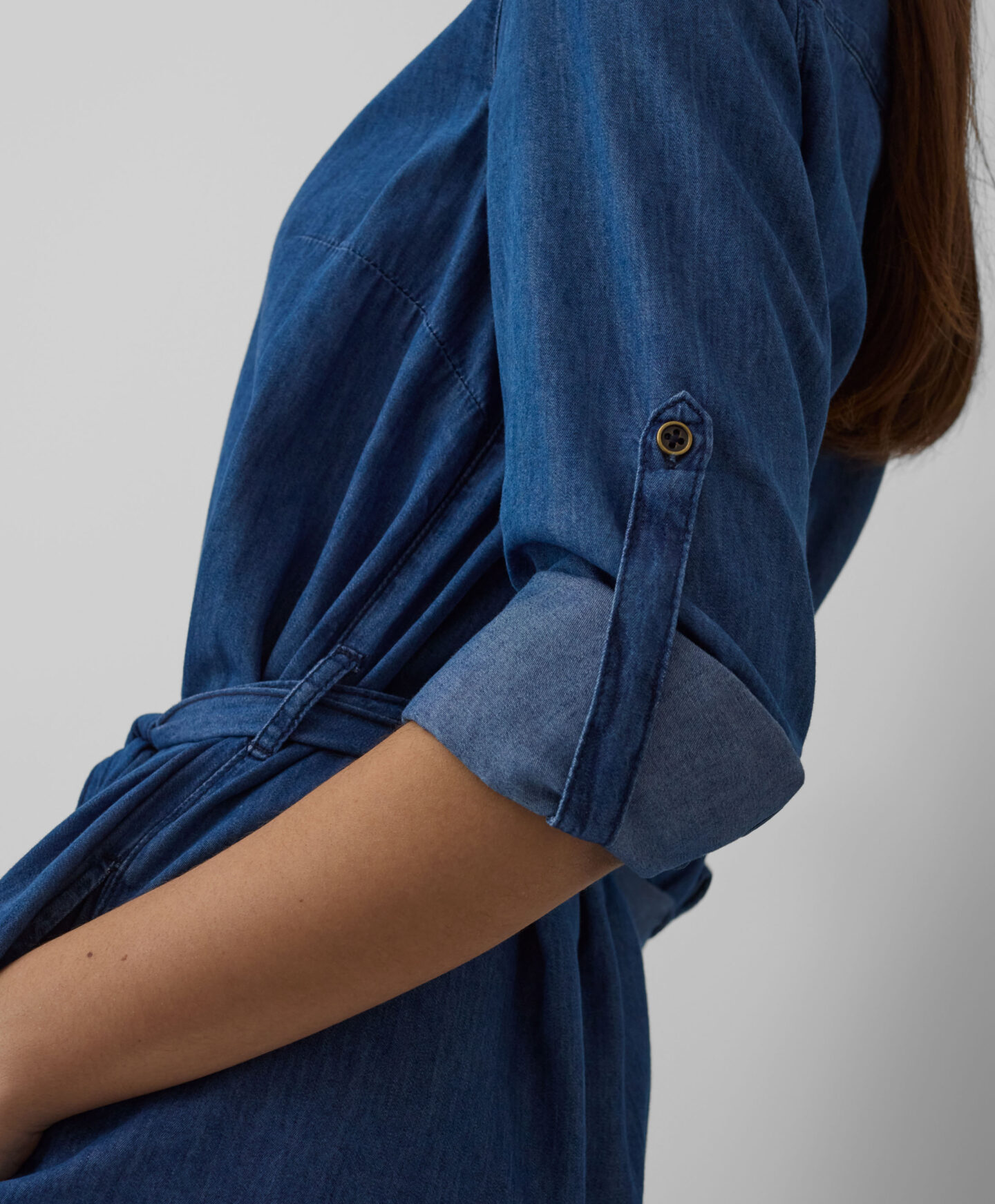 Ženska haljina od 100% pamuka klasičan je odjevni komad u modernom izdanju. Spoj udobnosti, laganog materijala i detalja s vezicom u struku stvoren je za ljubiteljice trendova. Haljina univerzalnog kroja odličan je odabir i za ležerna druženja i ured. Minimalistički dizajn i mekana pamučna tkanina čine ovu haljinu nezamjenjivim elementom svake garderobe.