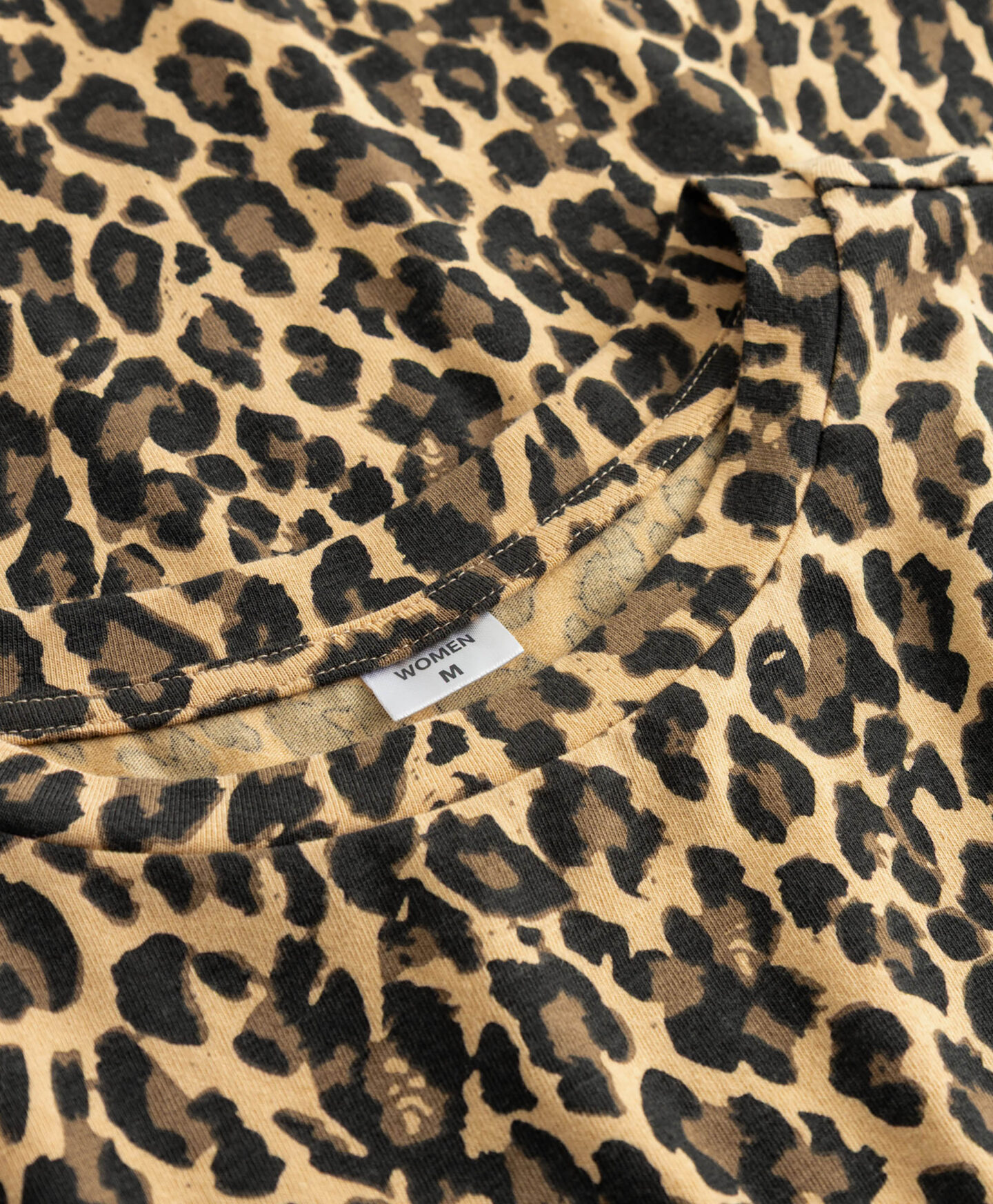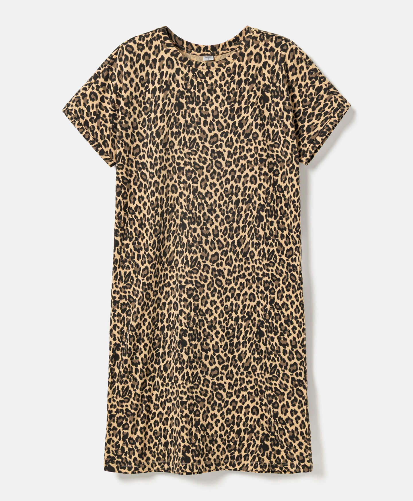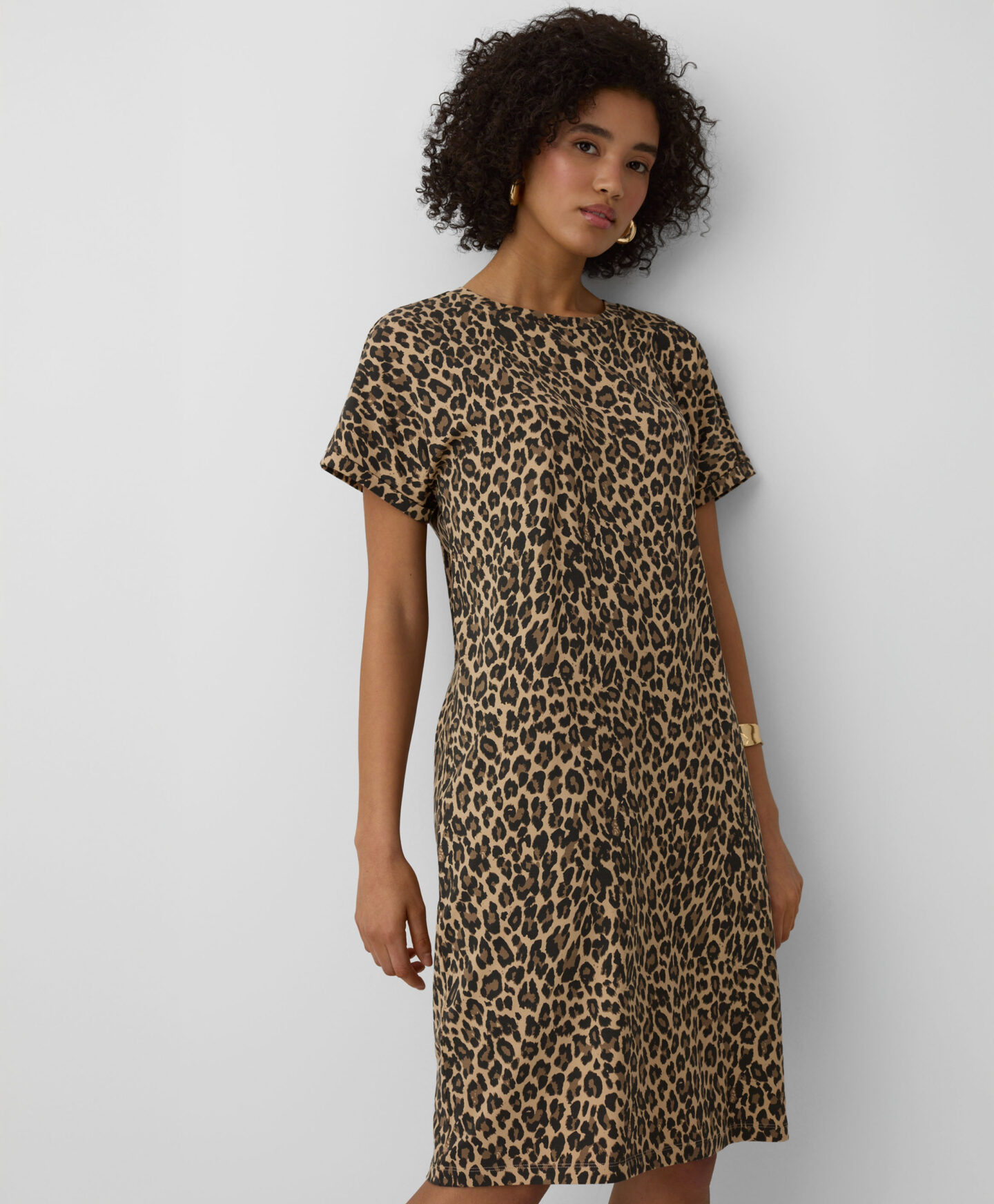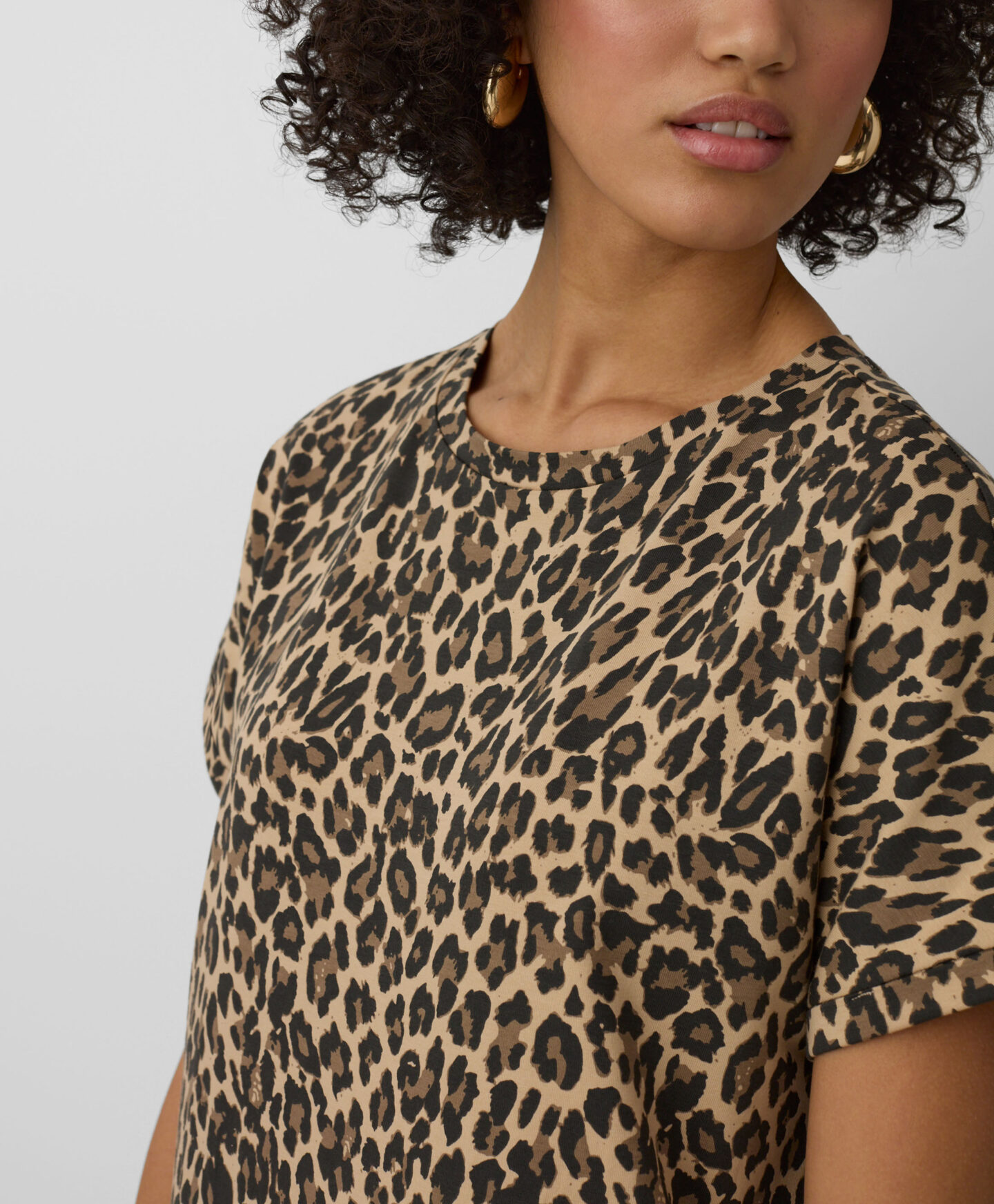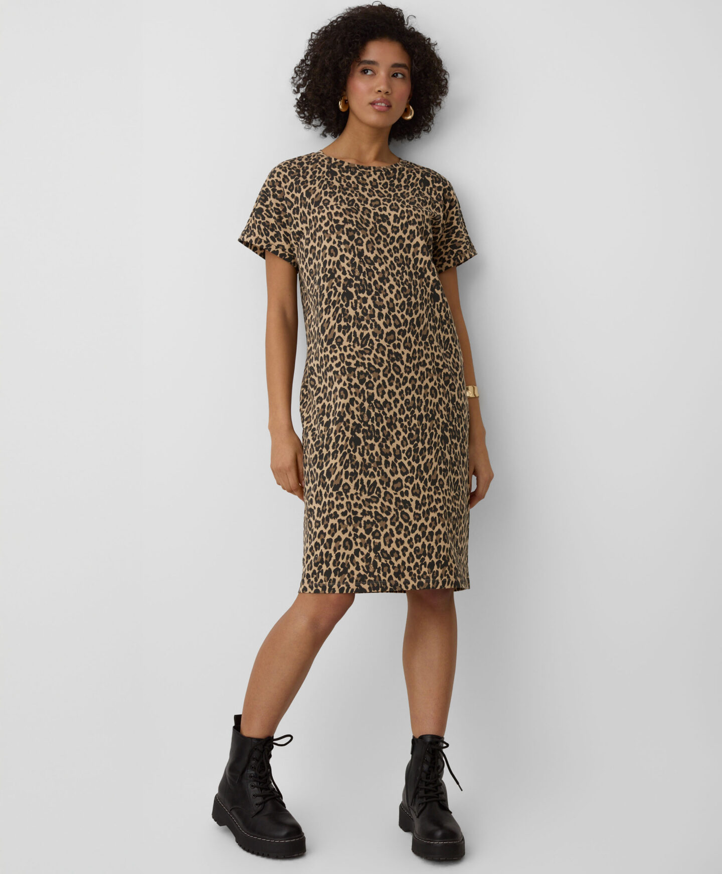 U ženskoj haljini s leopard motivom uvijek ćete se istaknuti. Ovaj motiv nije samo moderan, već i plijeni poglede te vam omogućuje da izrazite svoj individualni stil. Prozračan pamuk s dodatkom elastana lijepo pada niz tijelo, pružajući neusporedivu udobnost. Ova je haljina savršena i za svaki dan i za posebne prigode.