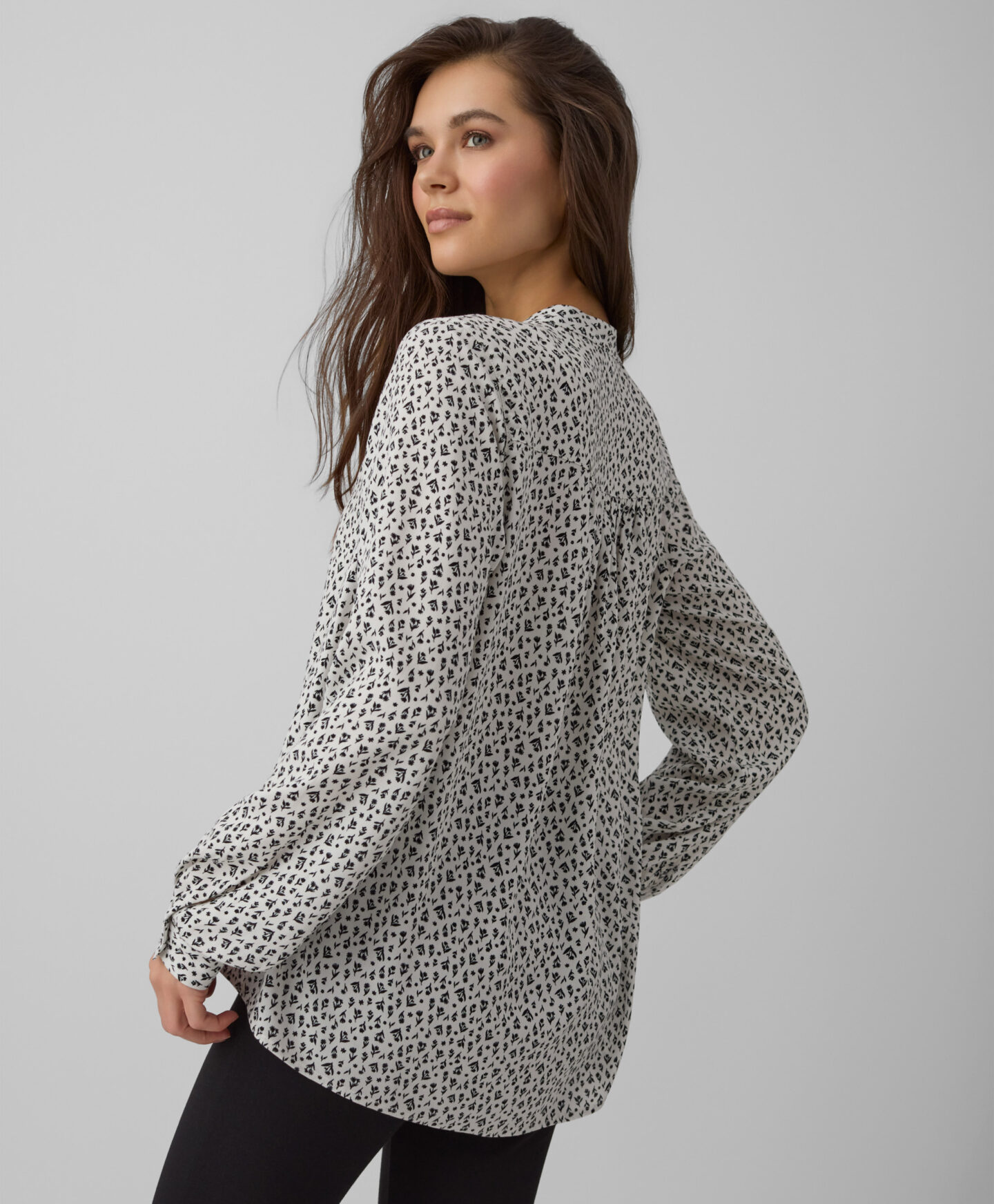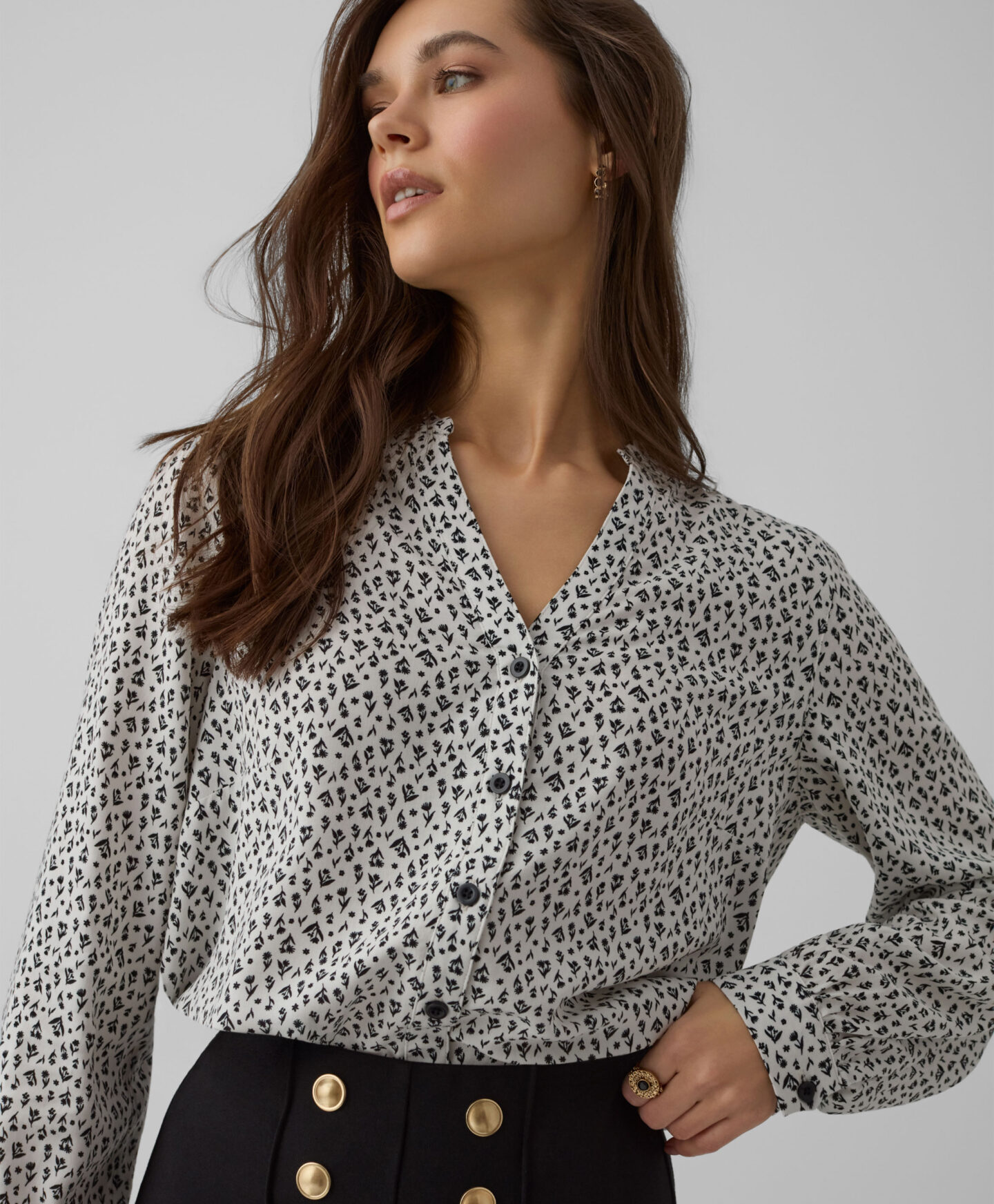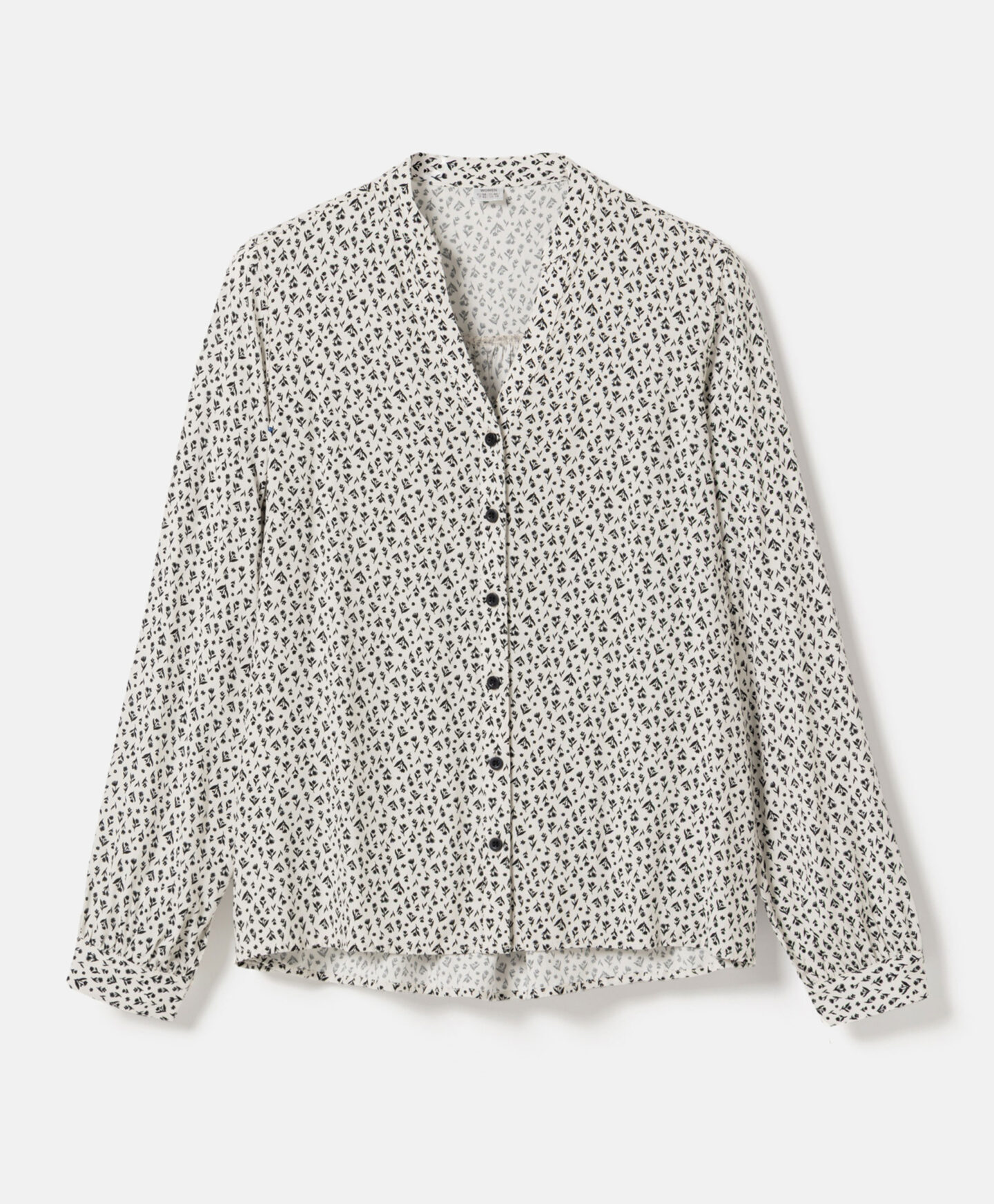 Ženska košulja od 100% viskoze mekana je, prozračna i savršena za svako godišnje doba. Nema ovratnik, što joj daje moderan i minimalistički izgled pa je idealan odabir za razne odjevne kombinacije – od ležernih do svečanijih. Profinjen je izbor za žene koje cijene eleganciju i udobnost svaki dan.