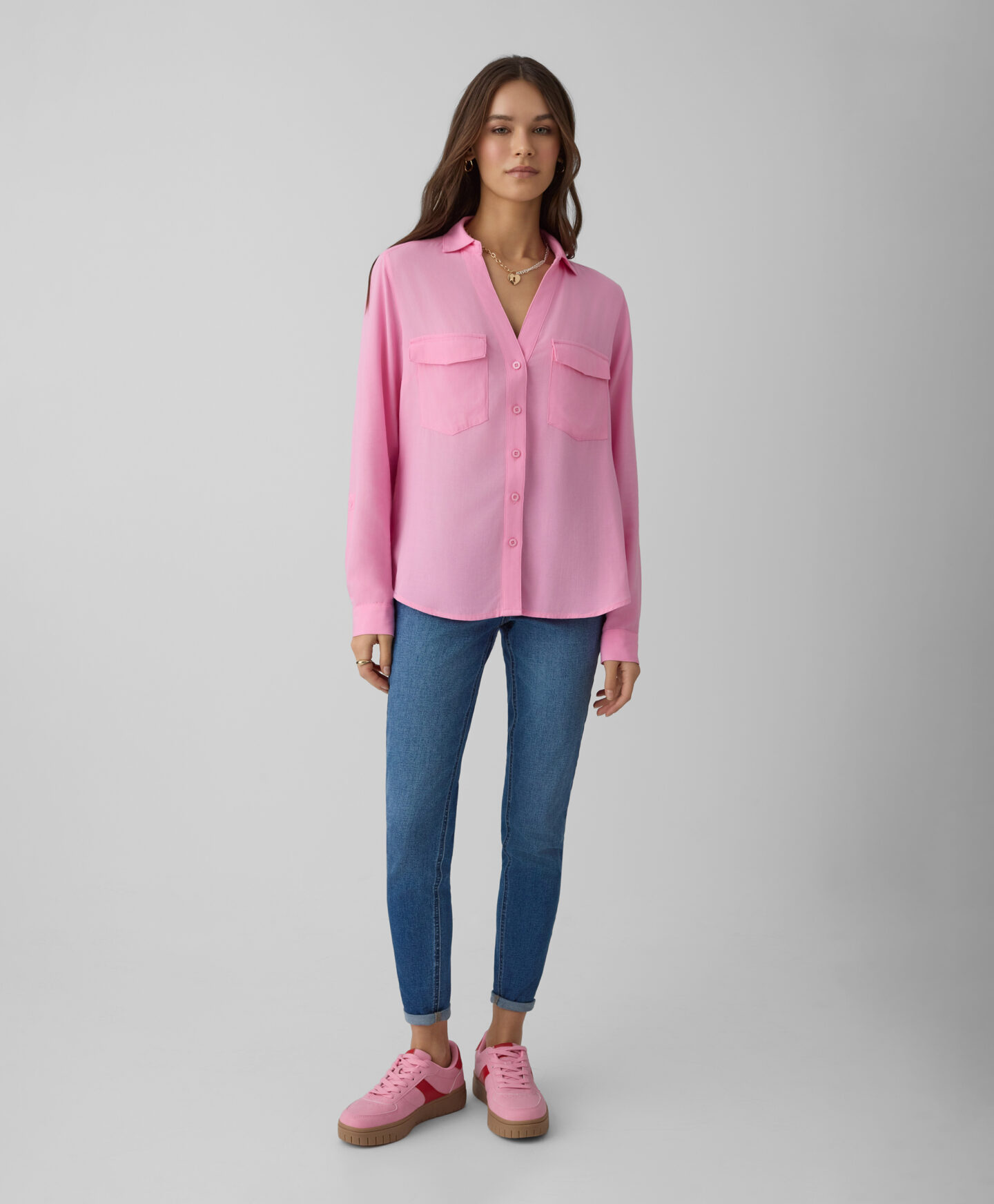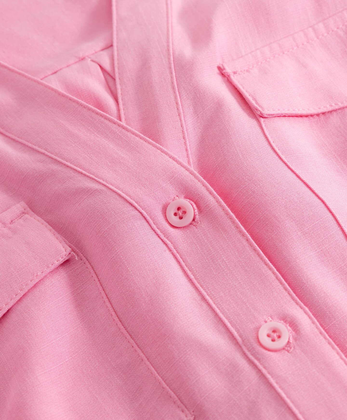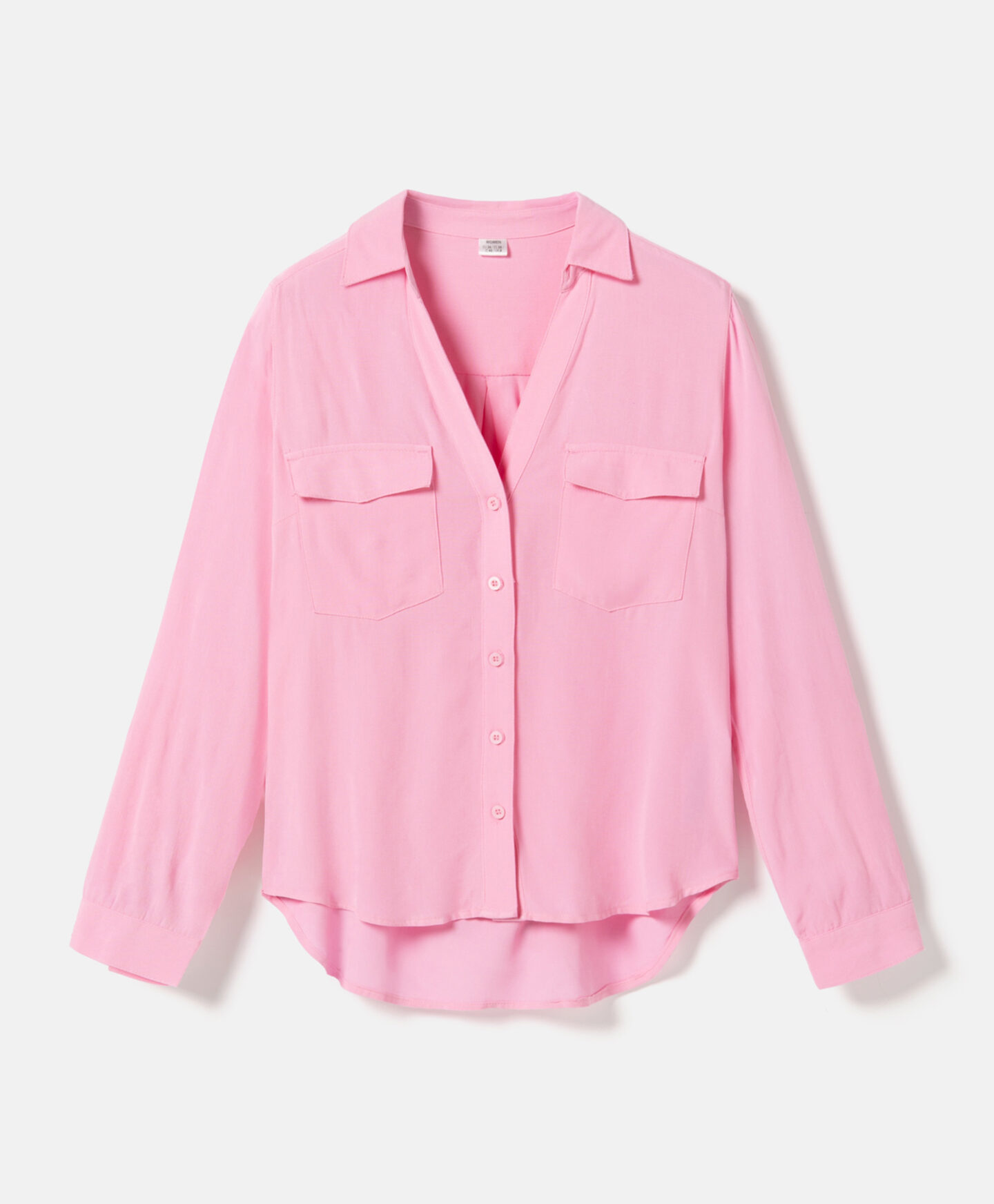 Ružičasta ženska košulja od 100% viskoze s džepovima savršena je i za svaki dan i za posebne prigode. Prozračna je, mekana i savršeno pristaje tijelu. Dva džepa na prednjoj strani čine je posebnom.