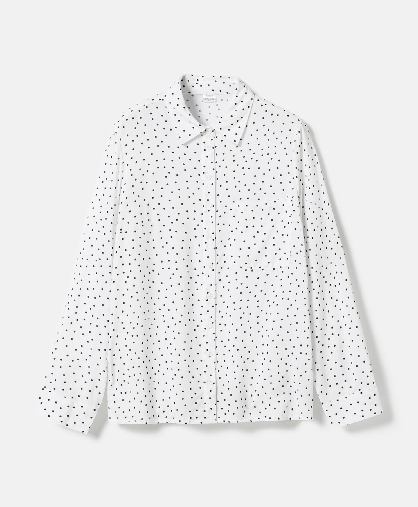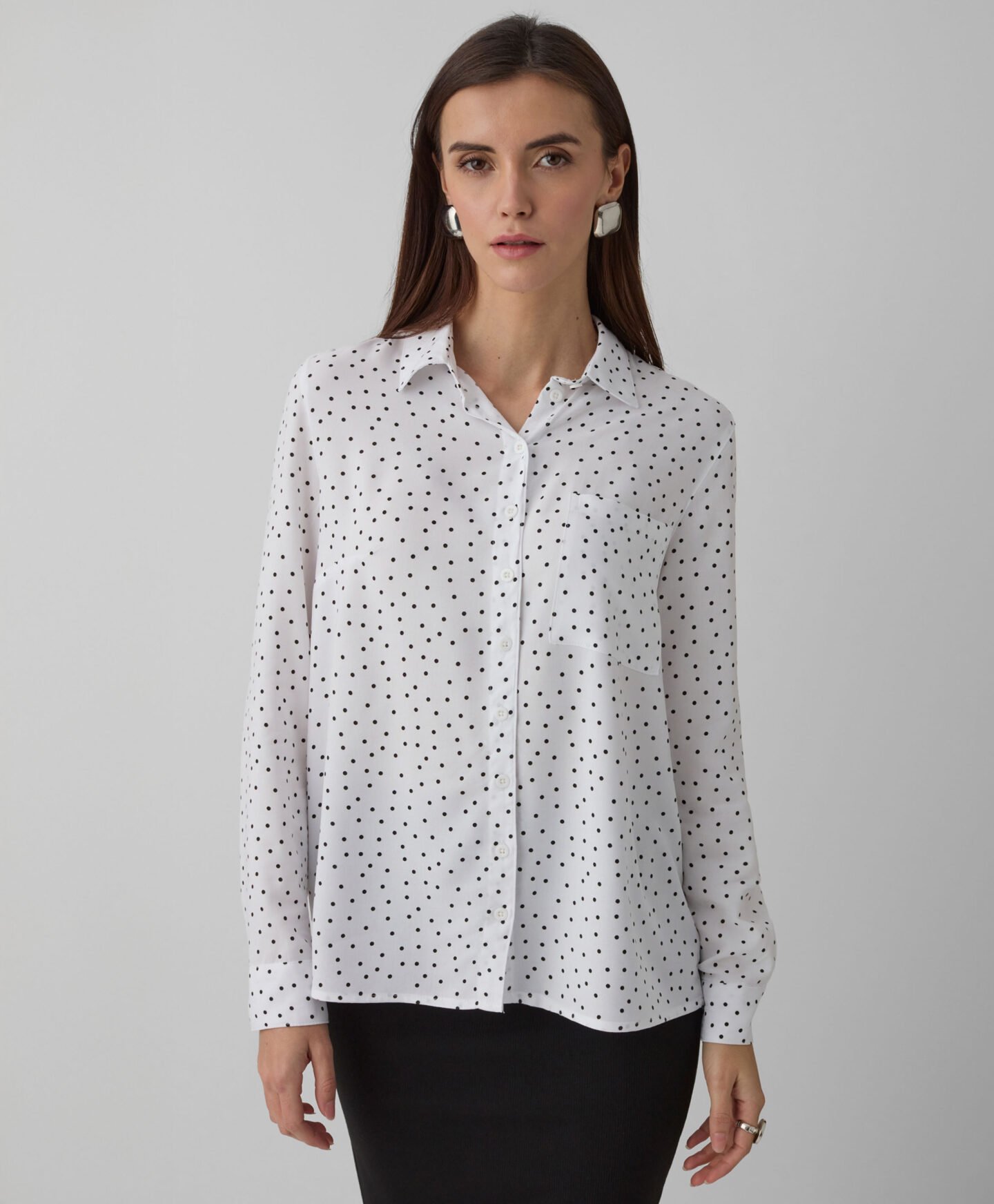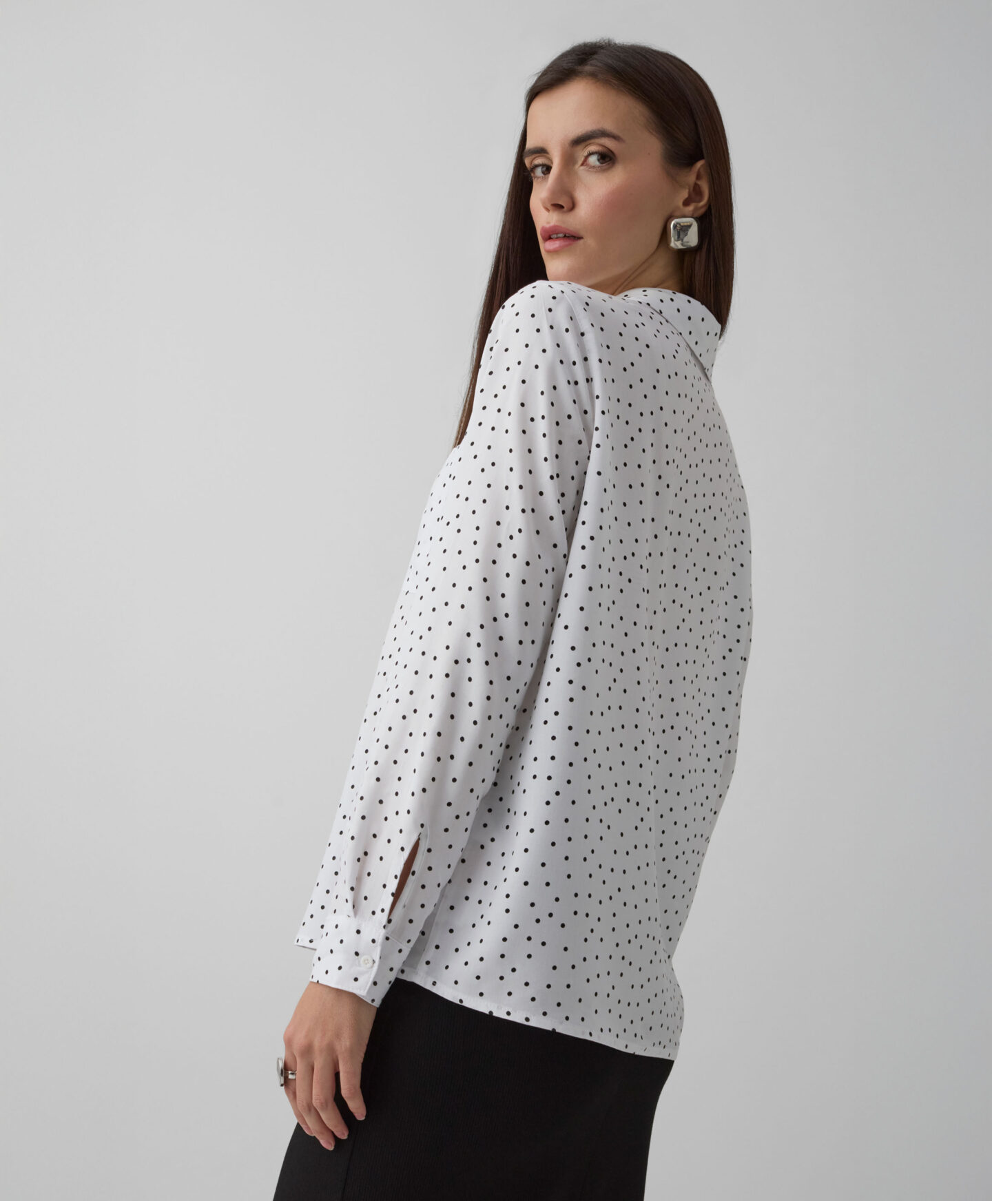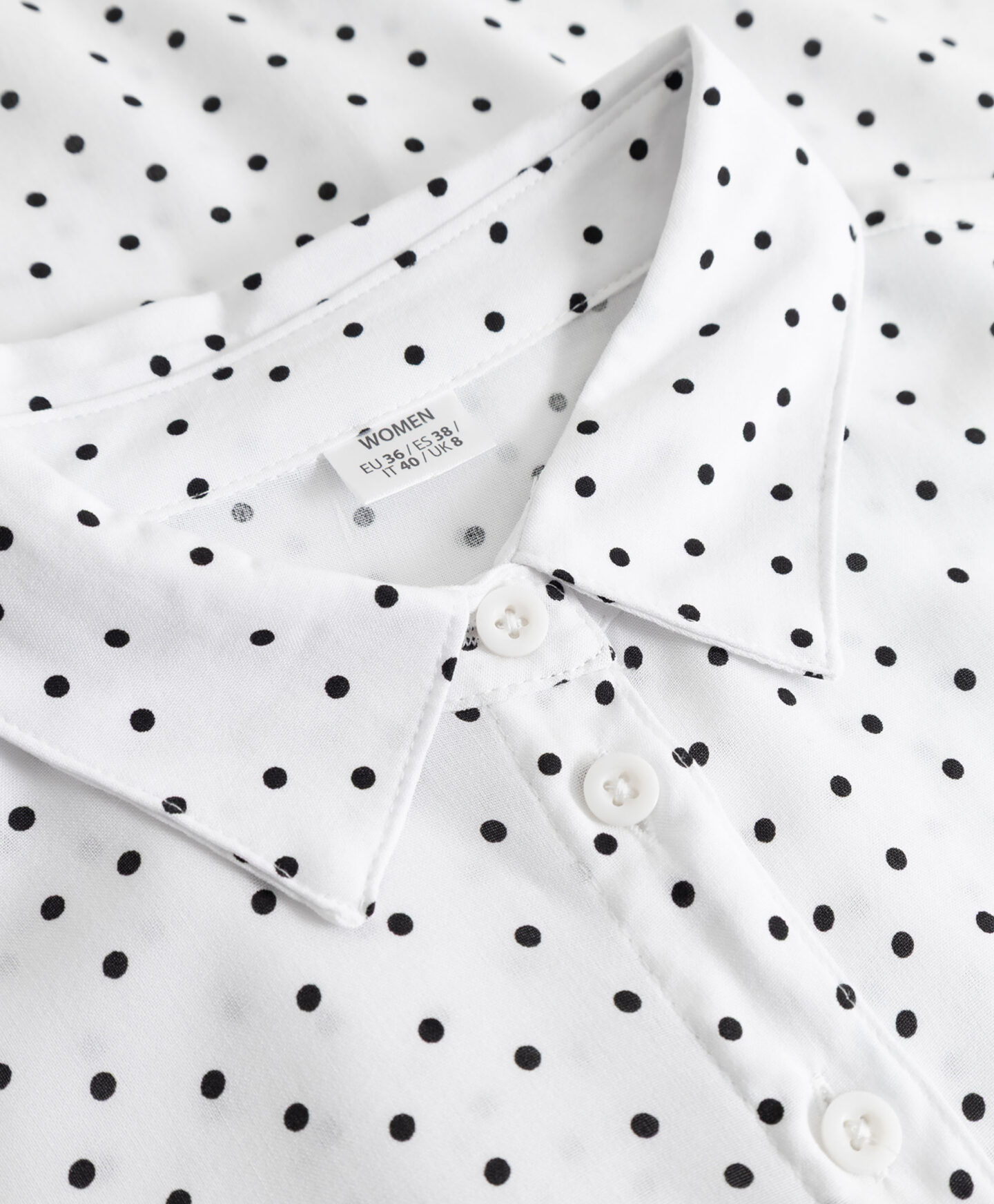 Ženska košulja od 100% viskoze s točkicama oduševit će vas svojom svestranošću! Motiv s točkicama nikad ne izlazi iz mode i odlično se slaže sa svakim odjevnim komadom – od hlača do suknji. Lagan, prozračan materijal pružit će vam potpunu udobnost. Ovo je košulja stvorena za ured, druženja ili svečane obiteljske večere.