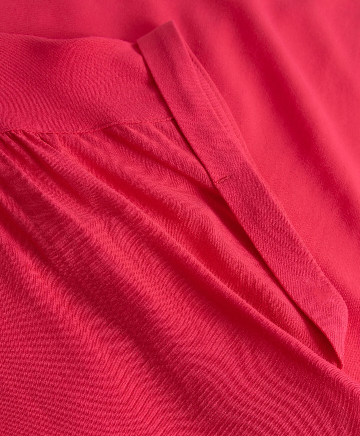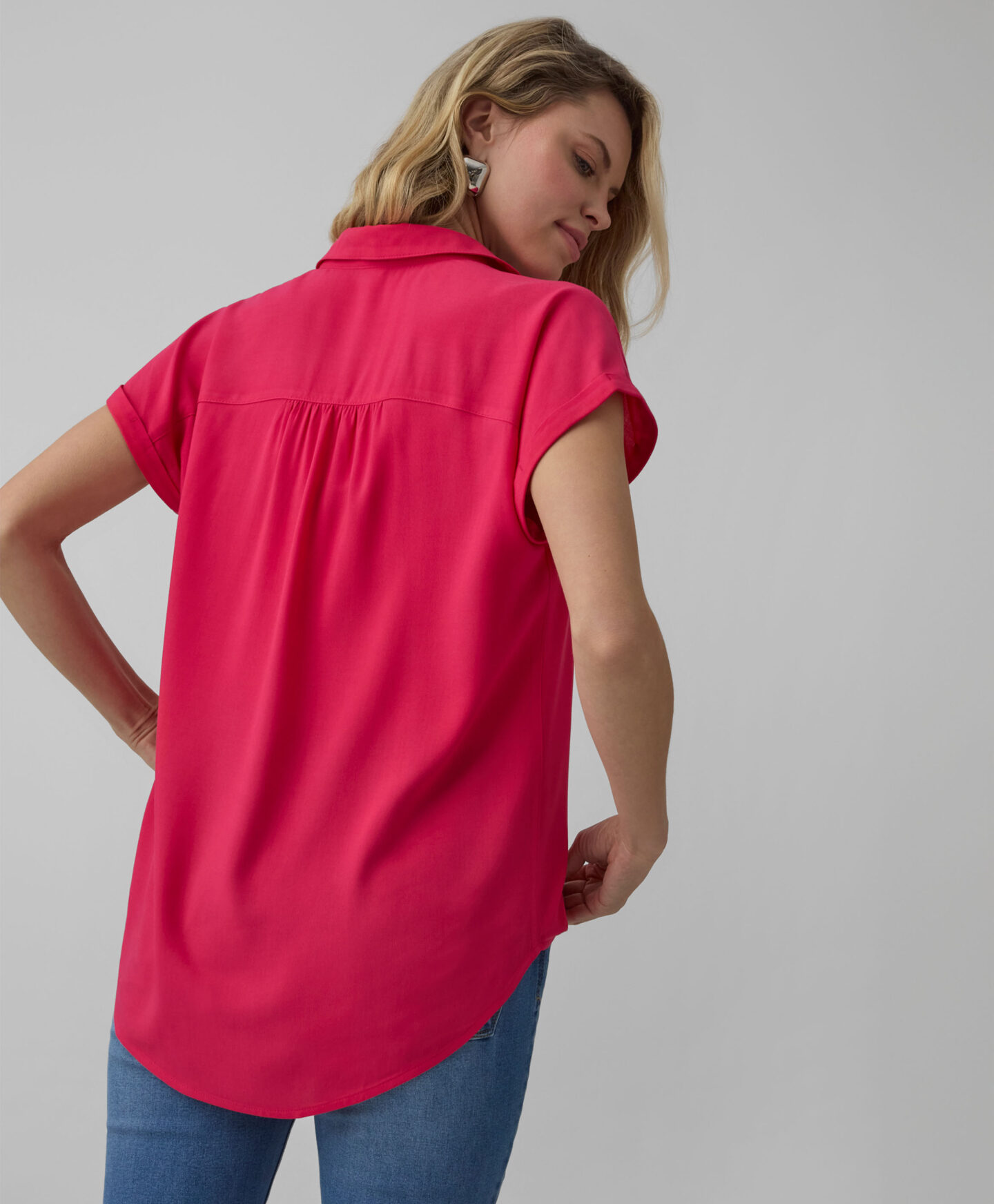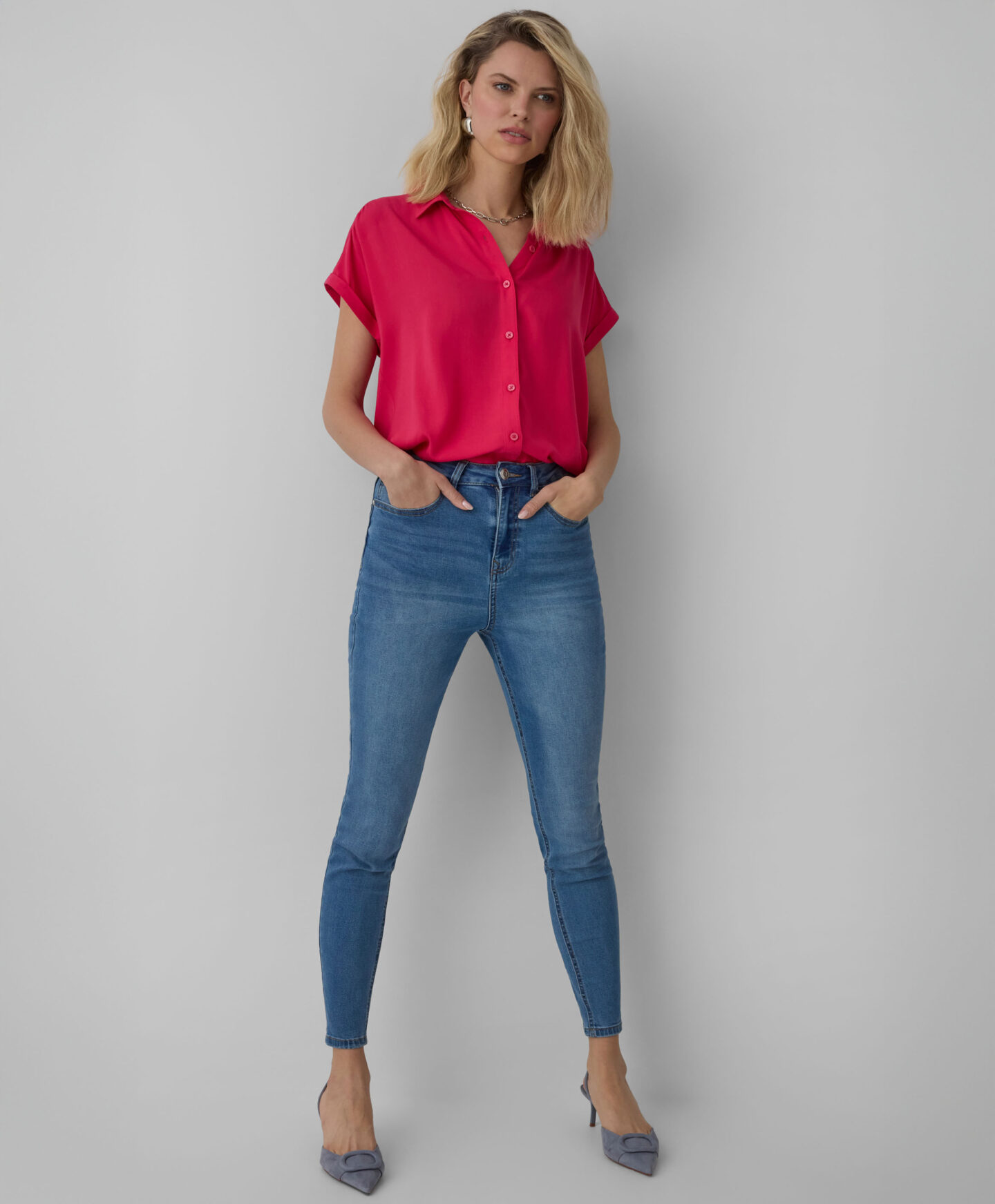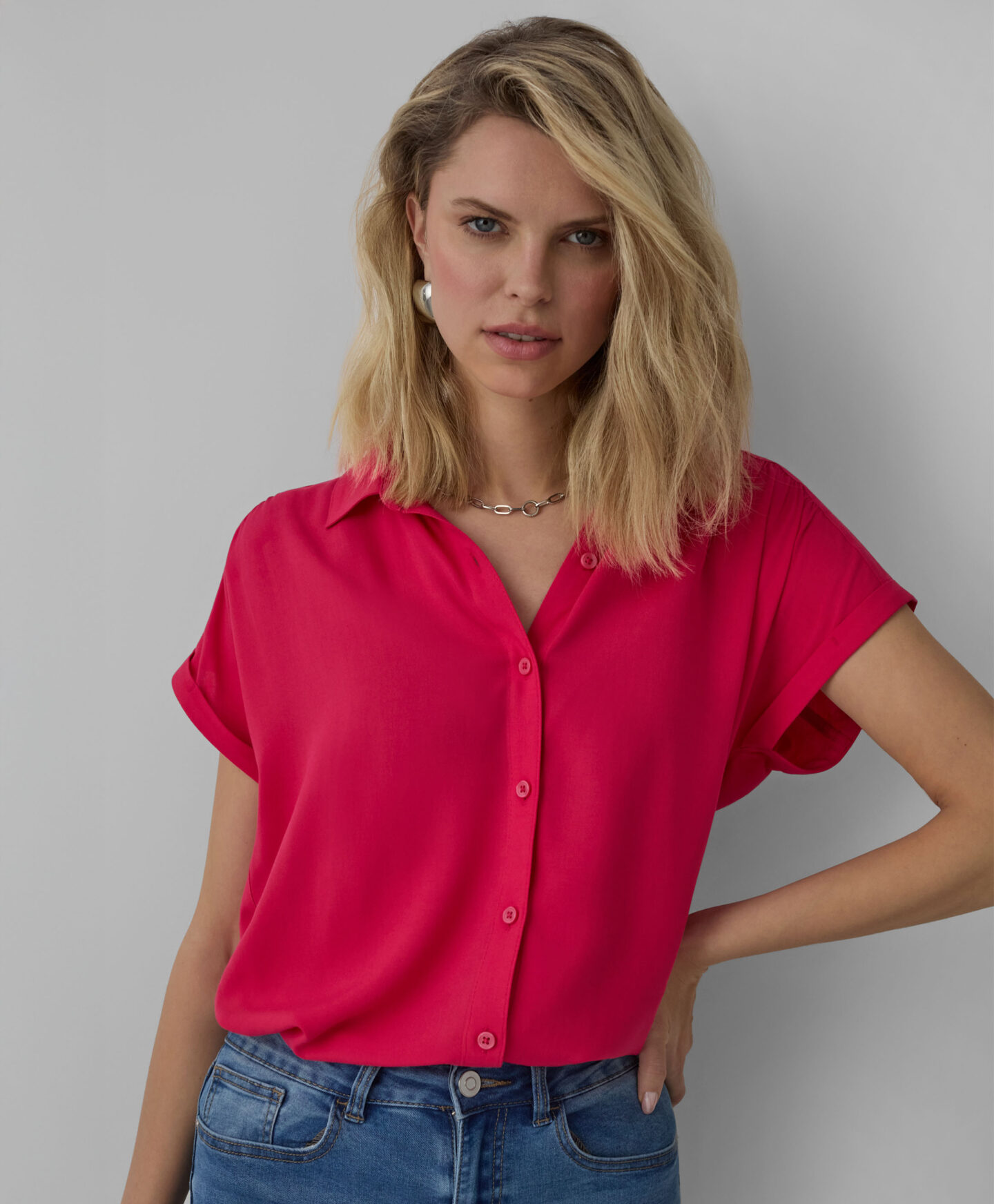 Ženska košulja od 100% viskoze ističe se bojom koja će podići svaku odjevnu kombinaciju. Udobnog je kroja, s kopčanjem na gumbe i kratkim rukavima. Lagana je, lepršava i stvorena za slojevite odjevne kombinacije. Neophodan je odjevni komad za svaki ormar.