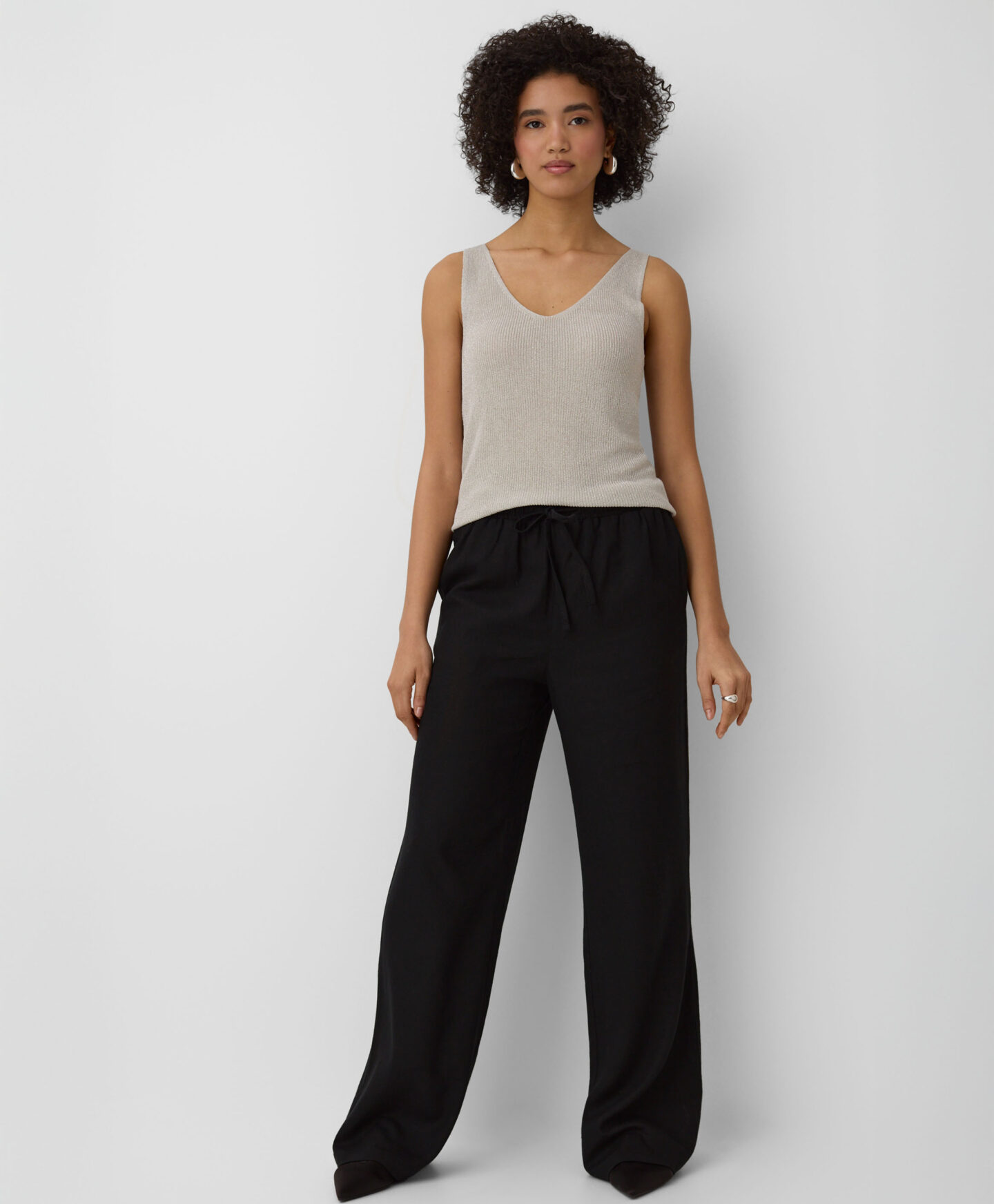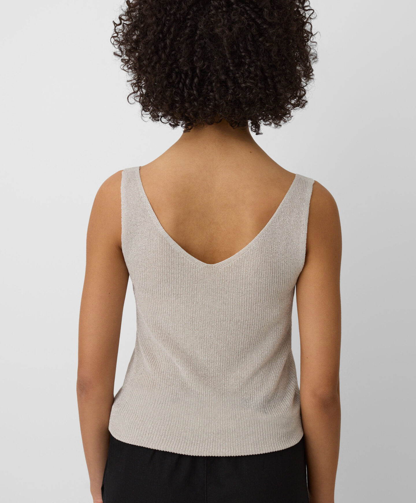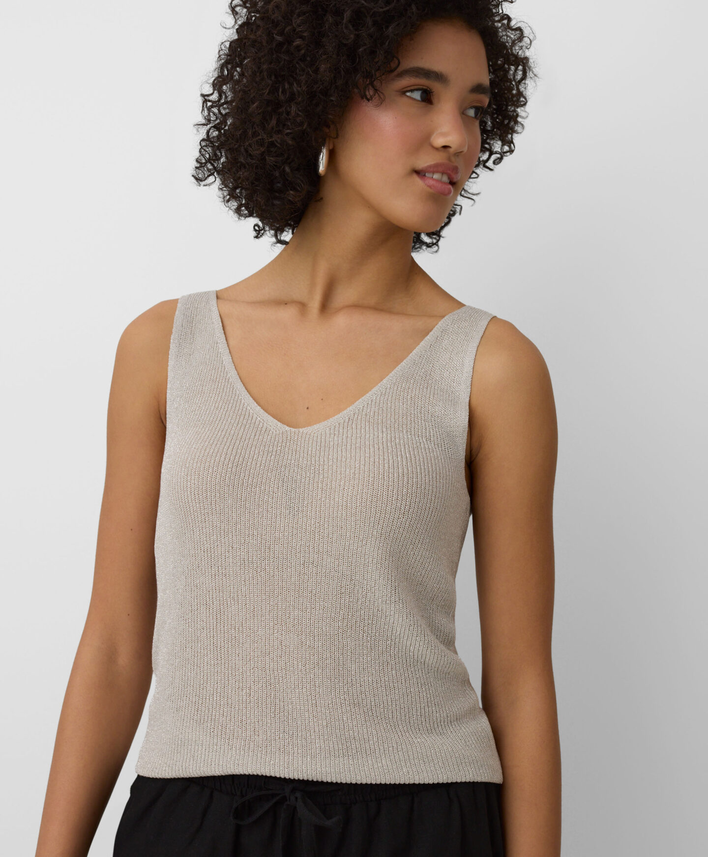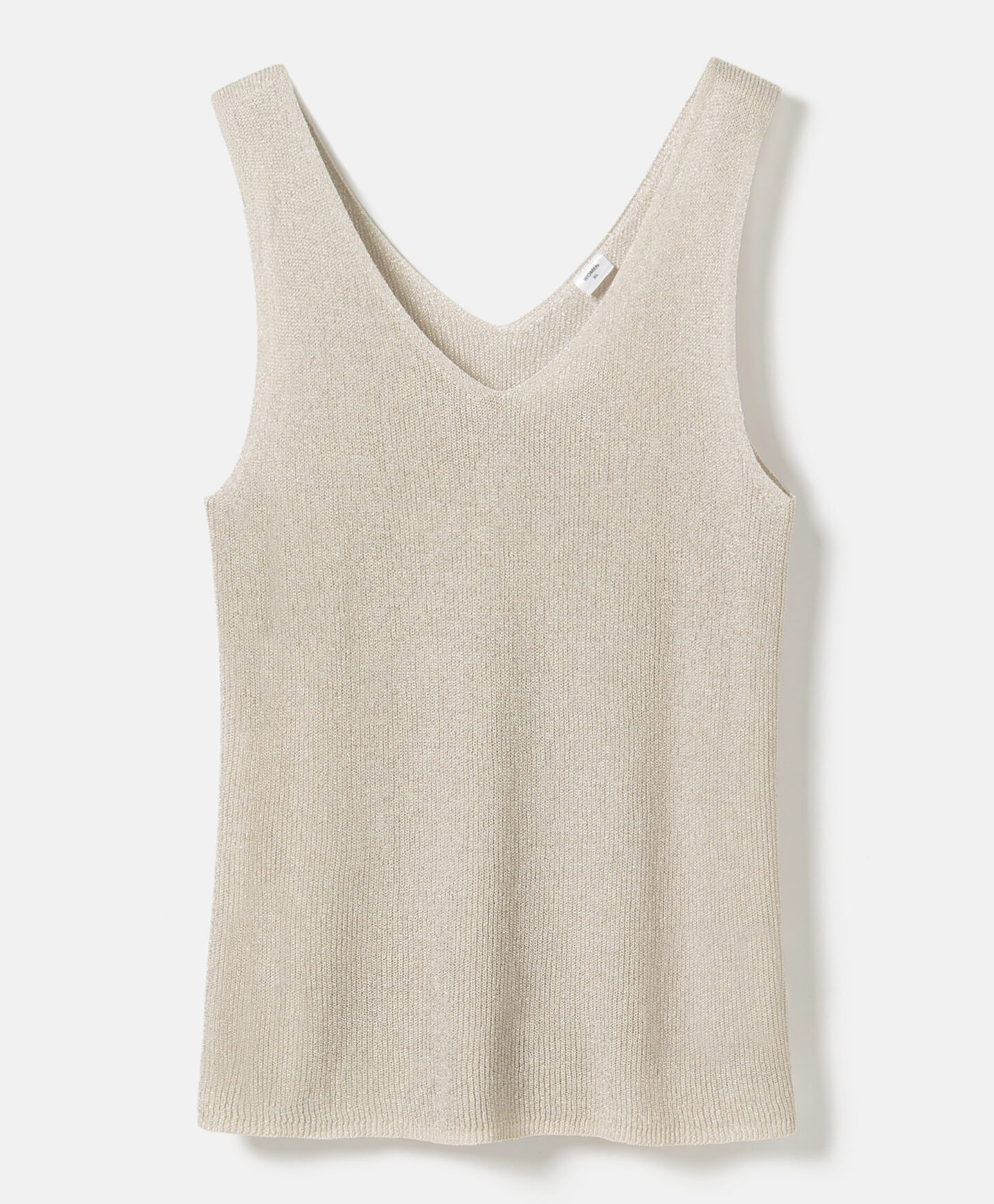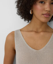 Bež ženska majica bez rukava unijet će dašak sjaja u vašu garderobu! Lagana je, prozračna i dopušta koži da diše. Širi kroj osigurava udobnost i bezbrižnost pri svakom pokretu. Izgleda odlično u kombinaciji s elegantnim hlačama ili suknjom.