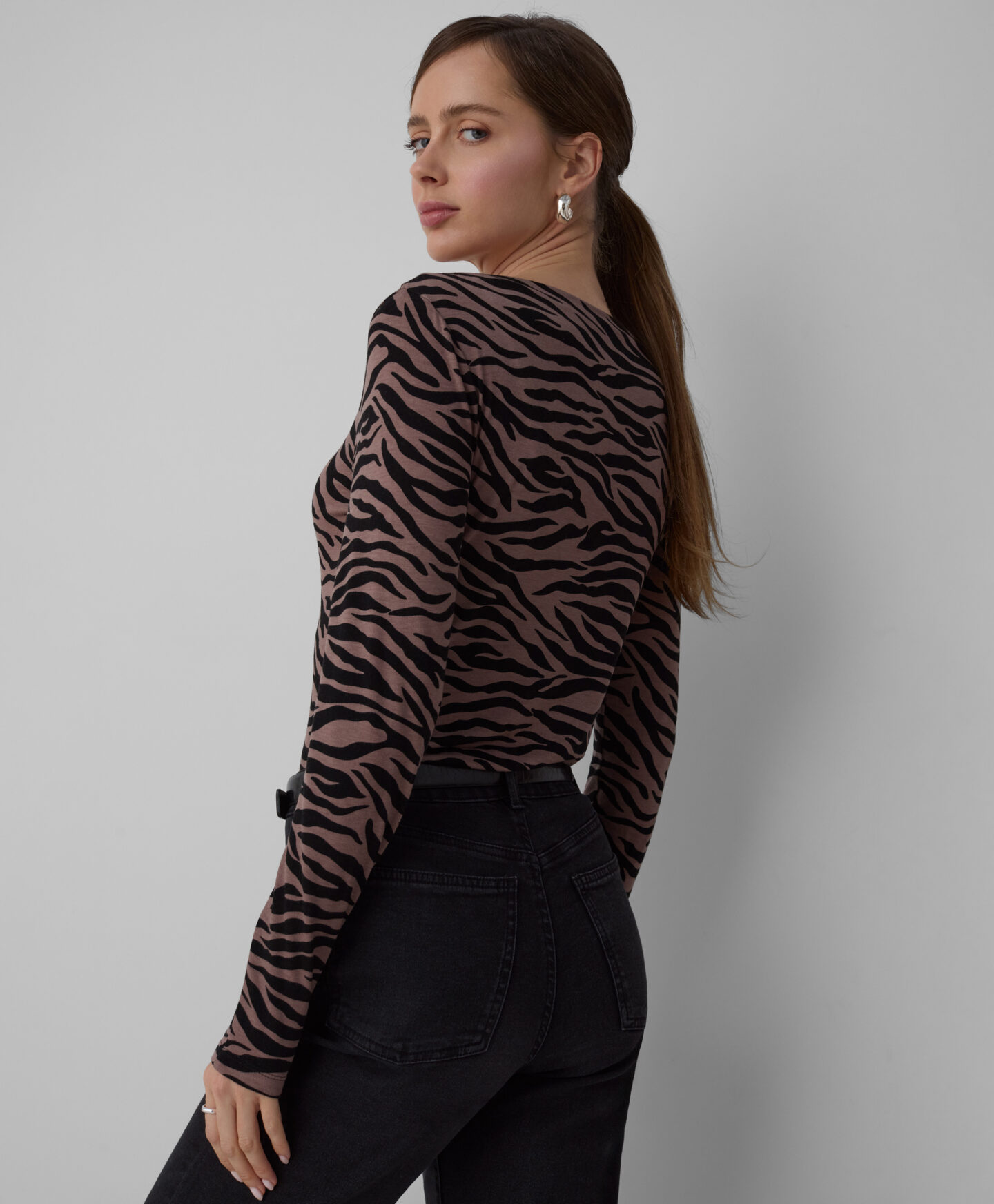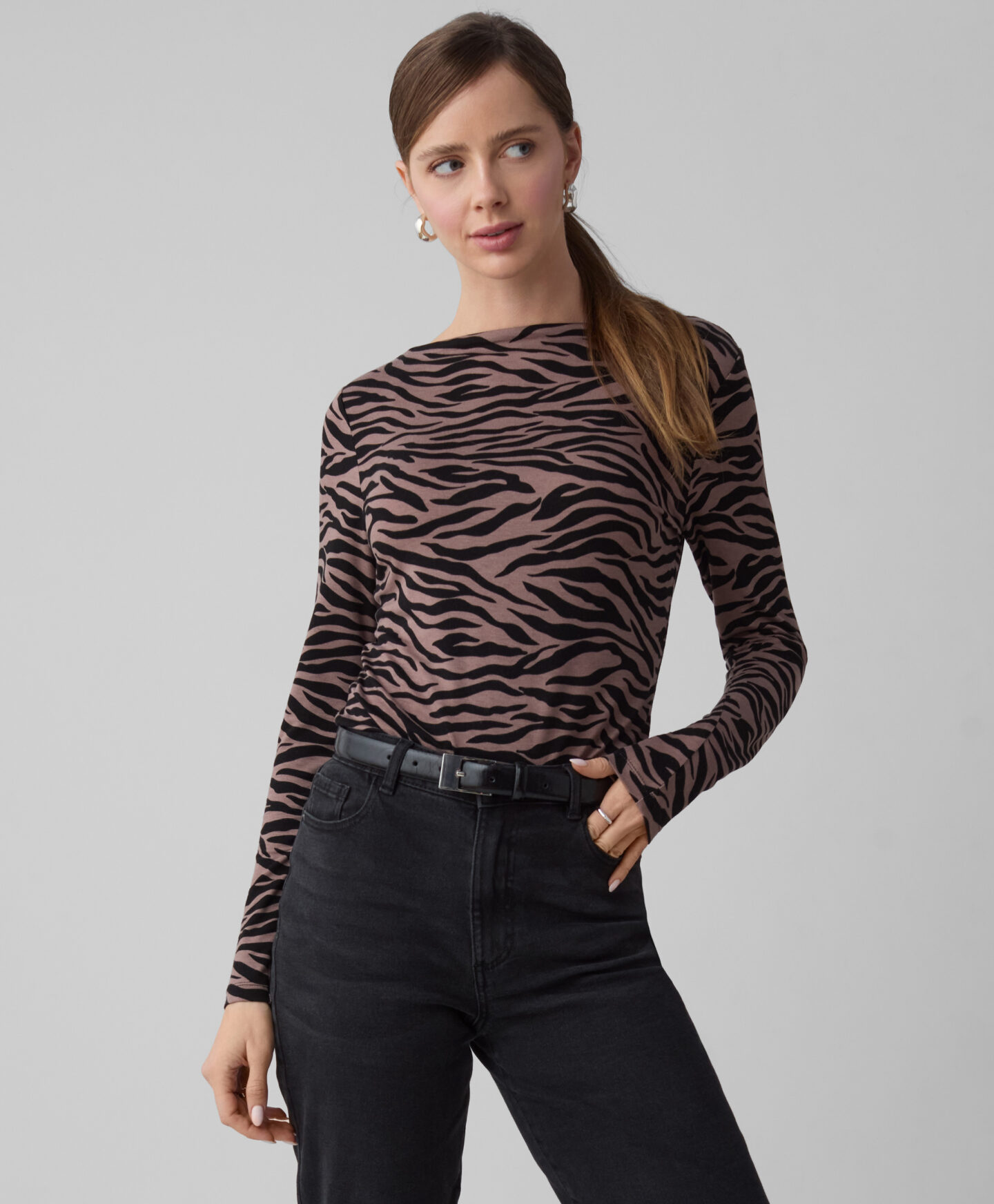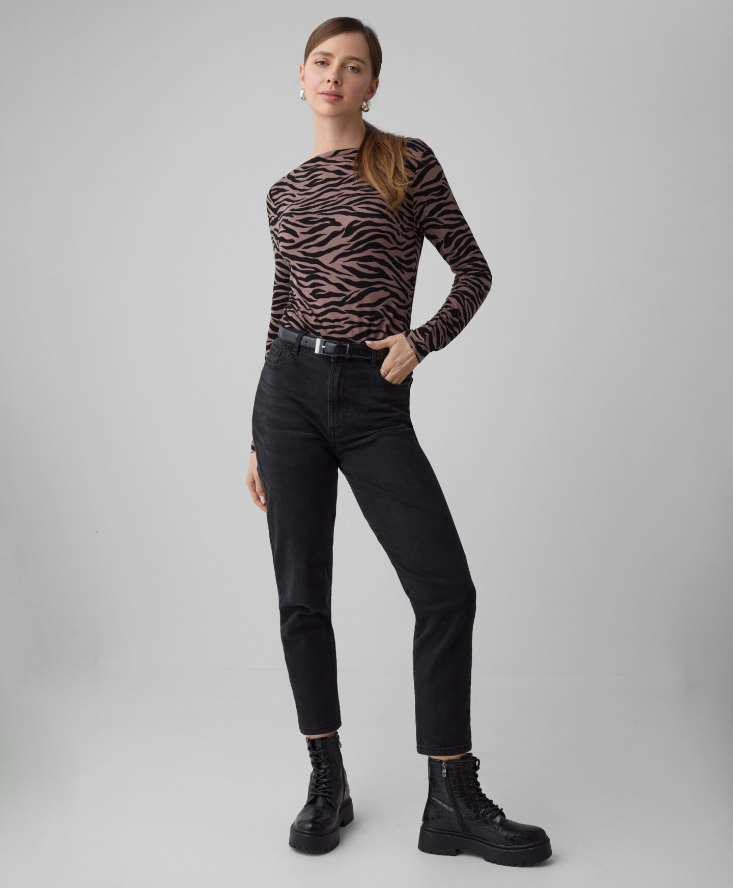 Ženska majica s tigrastim motivom idealan je izbor za žene koje se žele istaknuti šik odjećom. Mekana je, prozračna i ugodna za nošenje. Zahvaljujući visokom udjelu viskoze, majica dugih rukava lijepo pristaje uz tijelo, osiguravajući udobnost tijekom cijelog dana. Možete je kombinirati s elegantnim hlačama i gležnjačama za klasičnije odjevne kombinacije ili s trapericama za ležernije prigode.