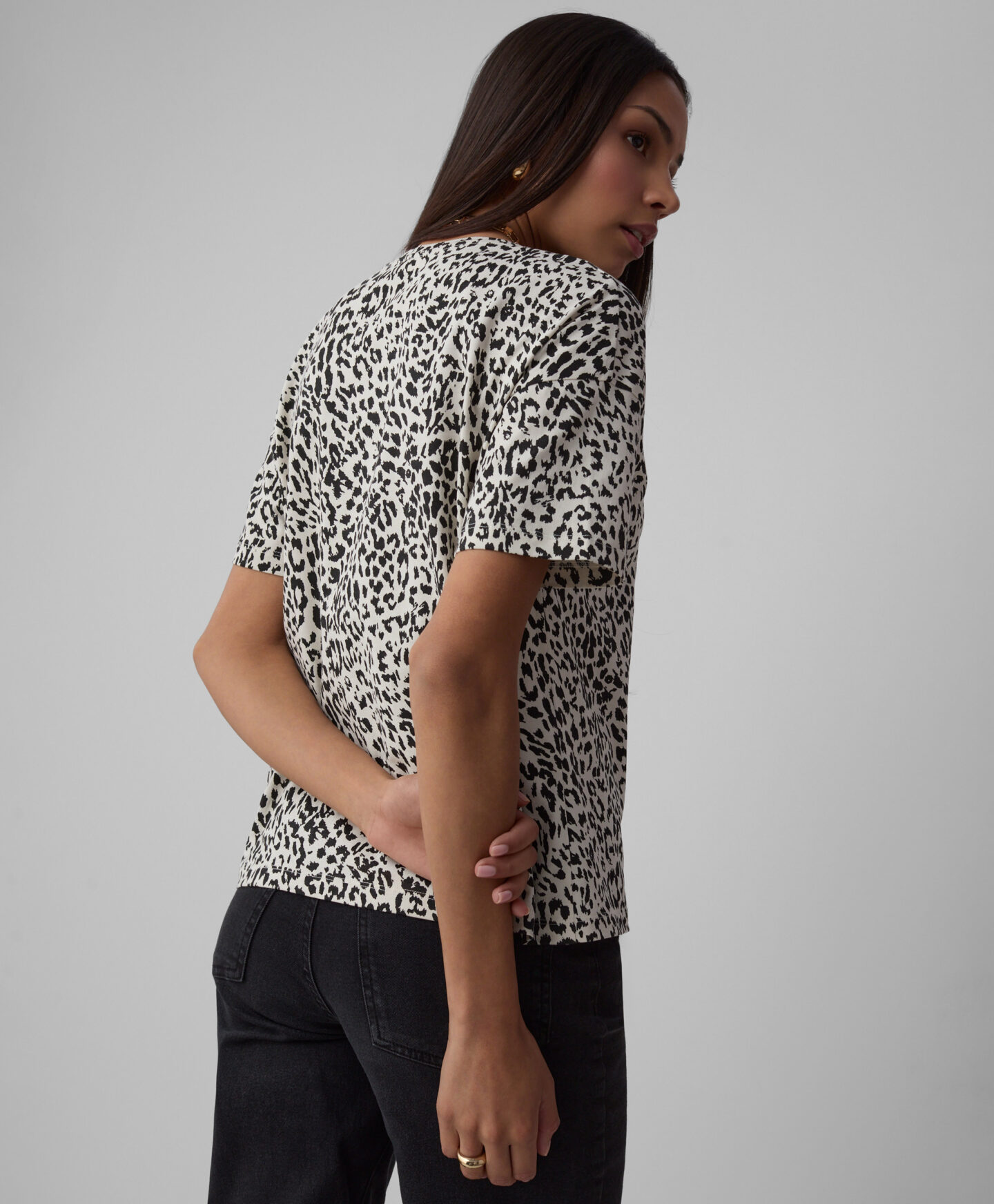 Ženska majica kratkih rukava od 100% pamuka s motivom mekana je, prozračna i nježna prema koži. Prirodni materijal čini je udobnom i savršenom za svaku sezonu. Idealna je za nošenje ispod veste, sakoa ili gornjeg dijela trenirke tijekom hladnijih razdoblja.