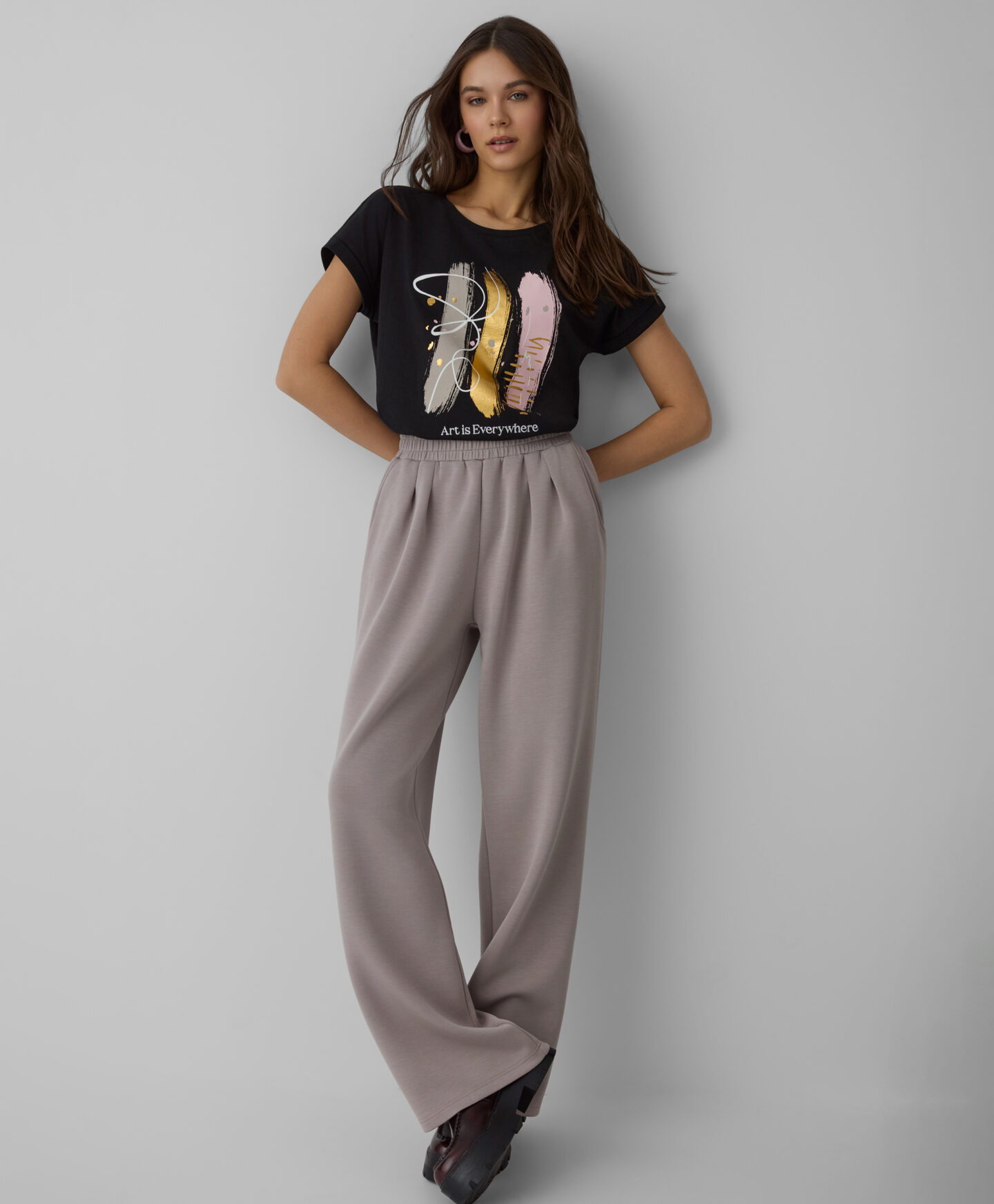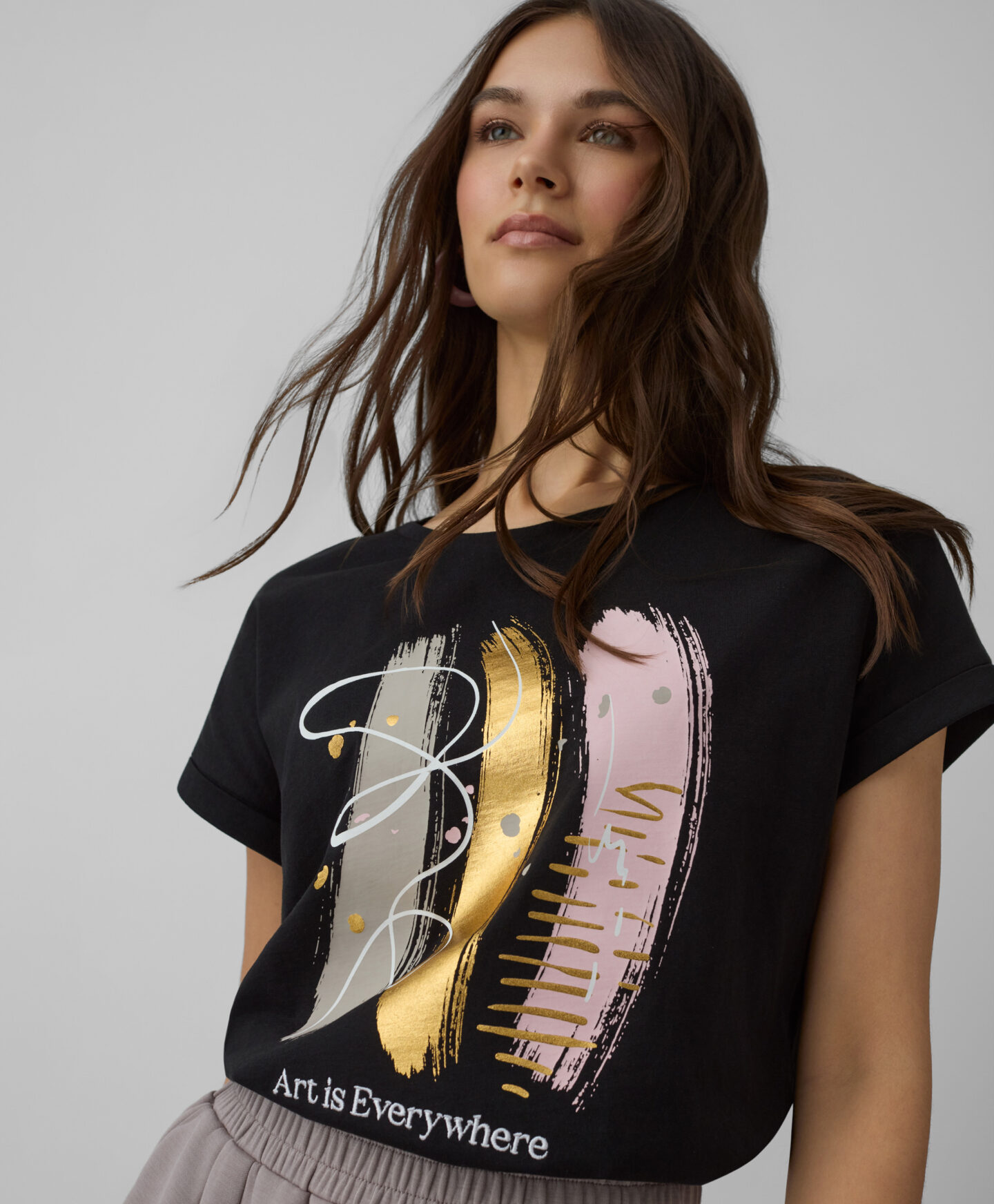 Ženska majica od 100% pamuka s kratkim rukavima savršena je za obožavateljice udobnih odjevnih komada. Kroj vam omogućuje potpunu slobodu kretanja i daje ležeran izgled svakoj odjevnoj kombinaciji. Odvažan otisak na prsima plijeni pažnju.