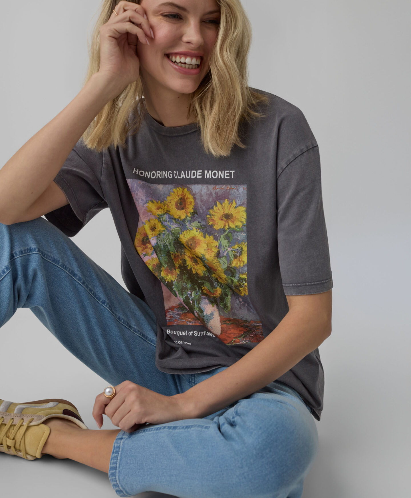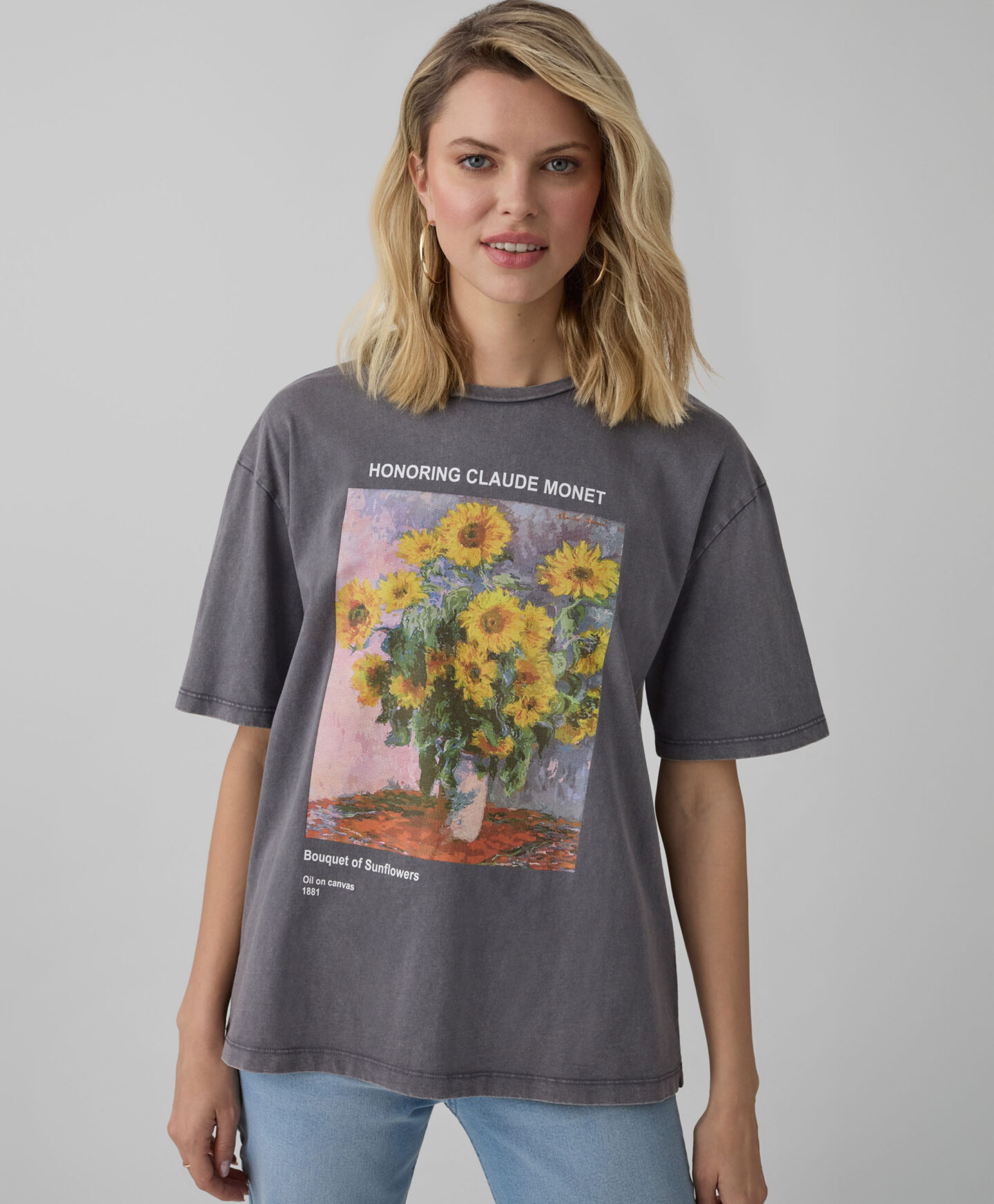 Ženska majica kratkih rukava od 100% pamuka s otiskom suncokreta bit će pravi dragulj u vašem ormaru. Lagana je, mekana i prozračna. Odlično pristaje uz traperice, ali i suknje. Izvrstan je odabir i za slojevite odjevne kombinacije i za toplije dane. Klasičan kroj i ugodan materijal garantiraju da će postati vaša omiljena majica.