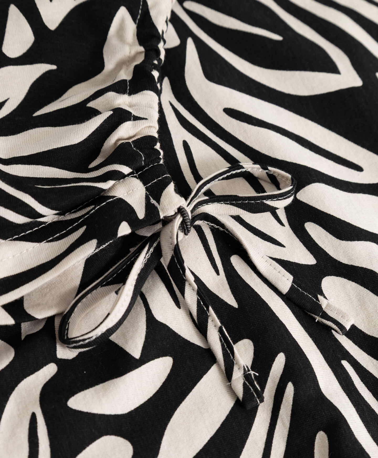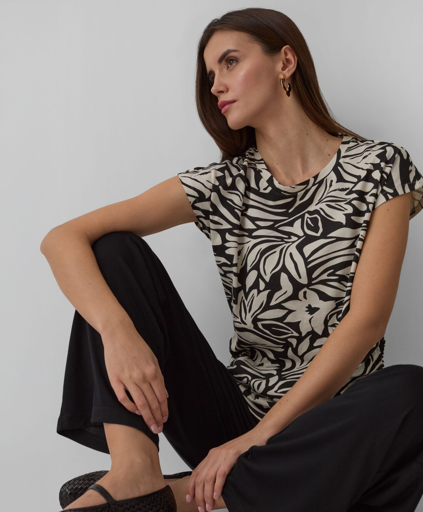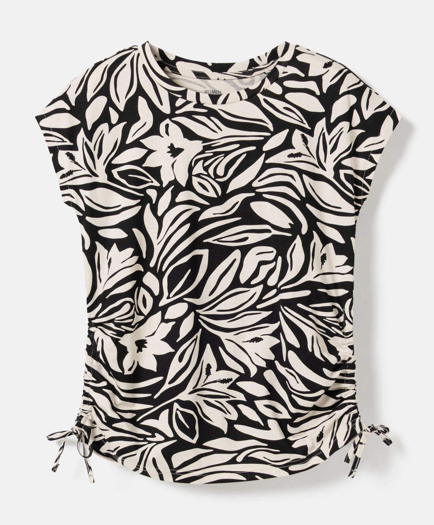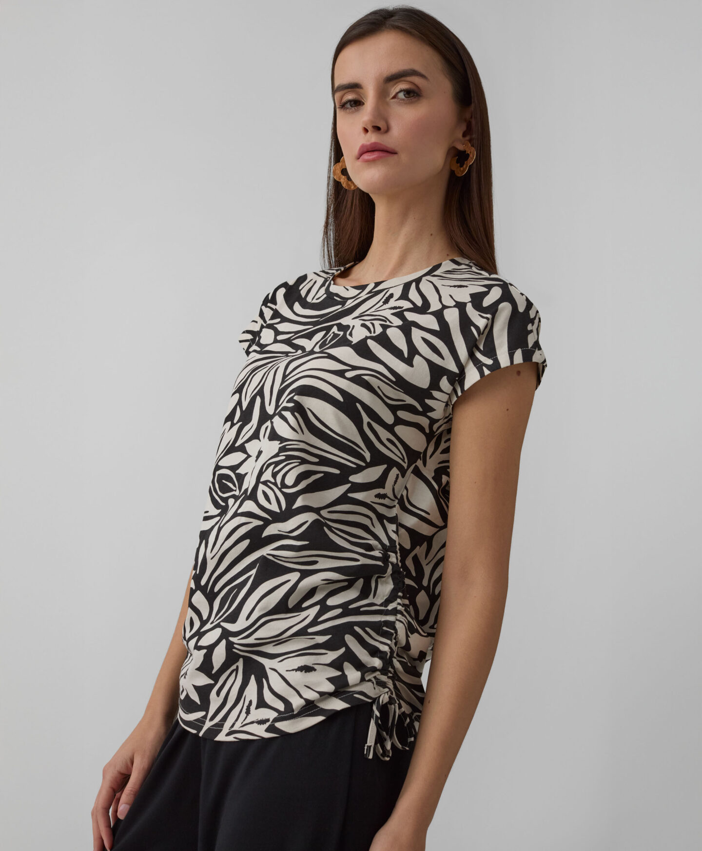 Ženska majica od 100% pamuka postat će neizostavan komad u vašem ormaru. Vezice su moderan detalj koji čini svaku odjevnu kombinaciju posebnom i jedinstvenom. Mekan, prozračan materijal osigurava udobnost tijekom cijelog dana, u svako godišnje doba. Majica odlično pristaje i uz traperice, kao i uz elegantnije odjevne komade poput hlača i suknji.