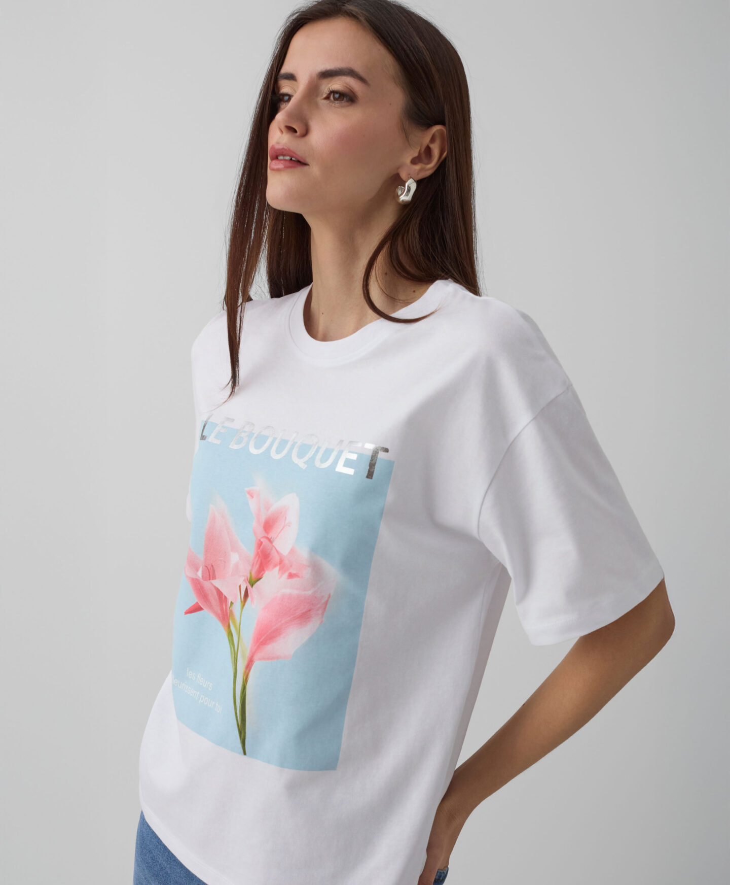 Ženska majica kratkih rukava od 100% pamuka s otiskom cvijeća donijet će dozu svježine u vašu garderobu! Mekoća materijala osigurava udobnost, a pamuk omogućuje koži da diše. Otisak na prsima privlači pažnju i čini majicu jedinstvenom. Uz klasične traperice stvara univerzalnu odjevnu kombinaciju savršenu za druženja s prijateljima, svakodnevne kupovine ili šetnje sa psom.