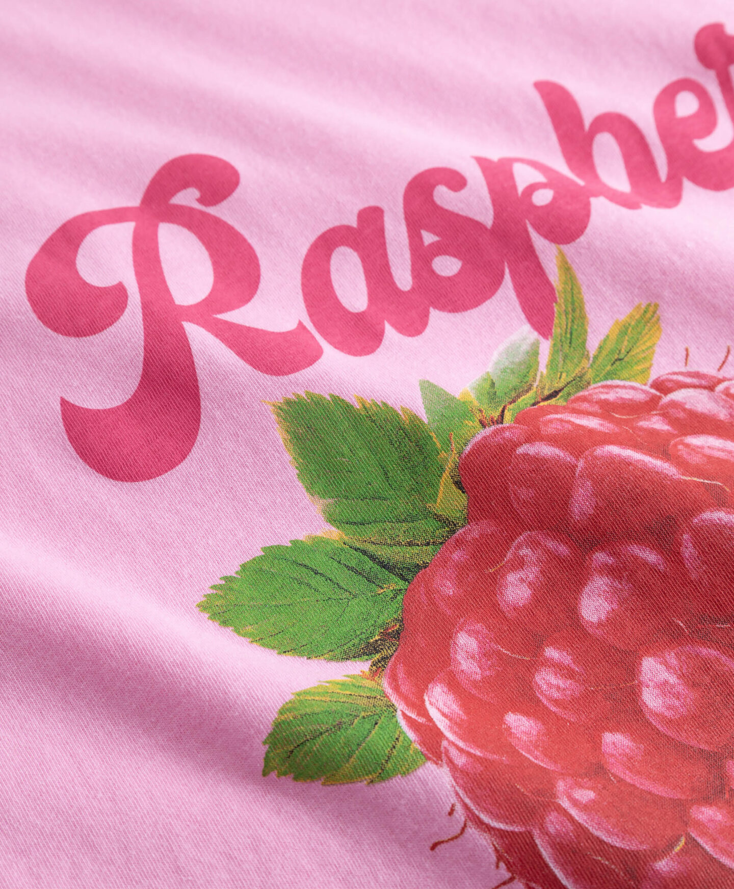 Ružičasta ženska majica kratkih rukava od 100% pamuka savršen je ljetni dodatak. Izrađena je od visokokvalitetnog pamuka i osigurava izvrsnu prozračnost čak i tijekom najtoplijeg vremena. Otisak maline zadržava svoju boju i nakon mnogo pranja.