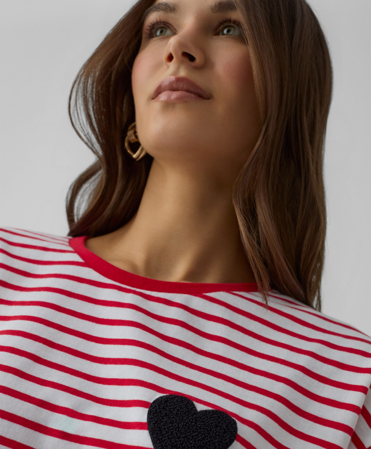 Ženska majica kratkih rukava od 100% pamuka s prugama pruža vam udobnost u modernom izdanju. Savršena je za različite odjevne kombinacije. Zahvaljujući prozračnom materijalu koji je ugodan na koži postat će vaš omiljen odjevni komad!