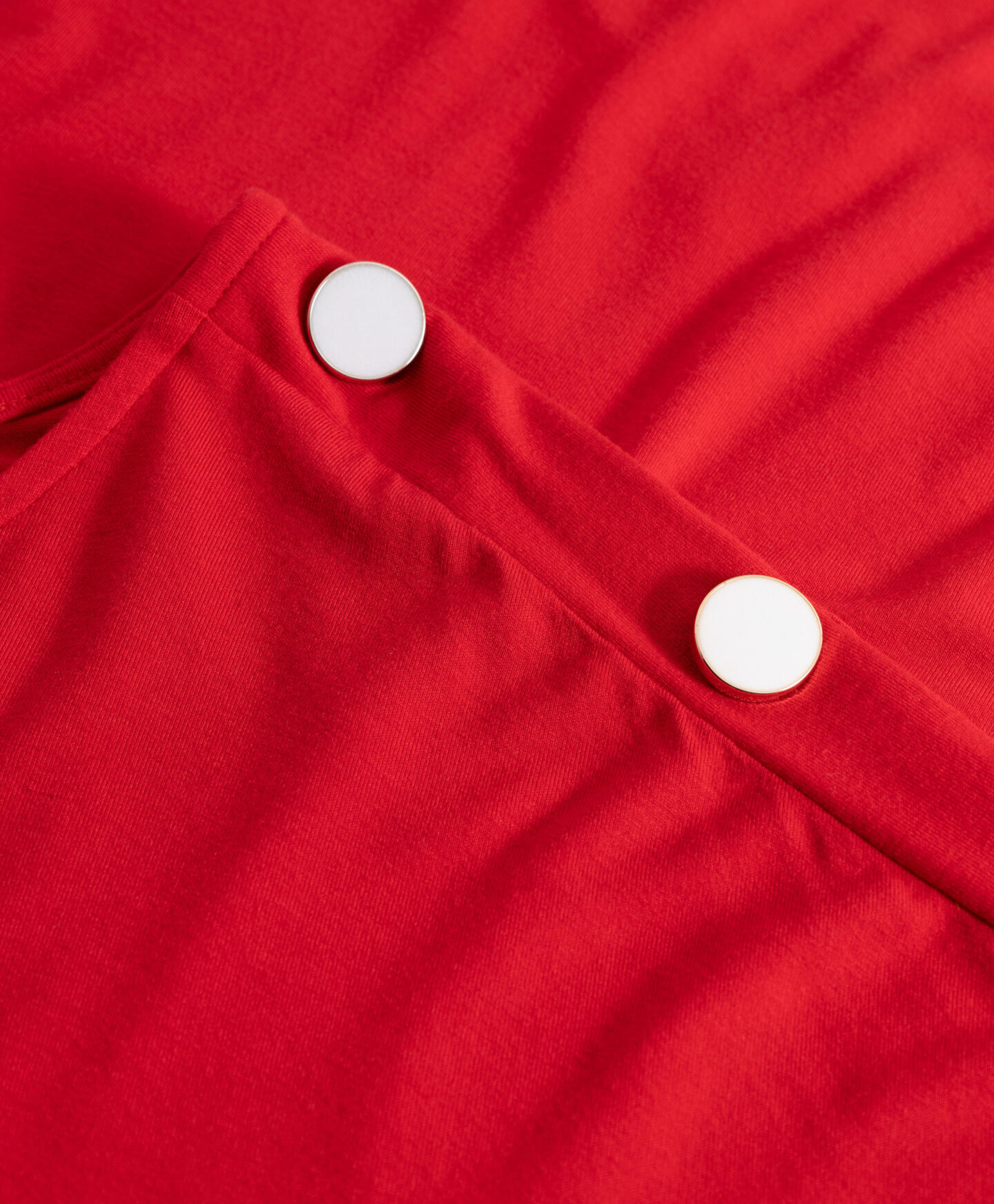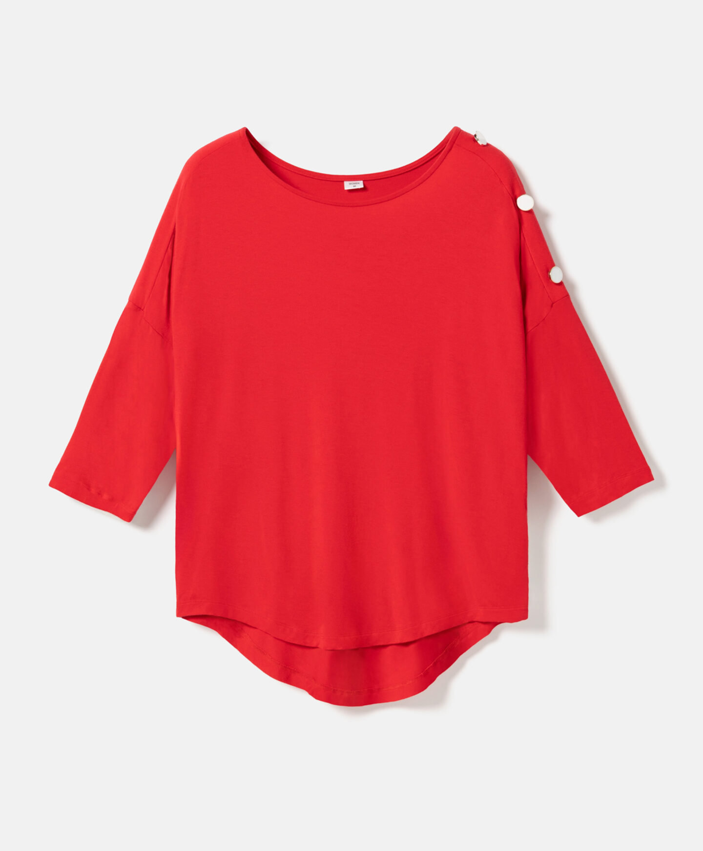 Crvena ženska majica kratkih rukava s visokim udjelom viskoze stvorena je za žene koje cijene stil i udobnost. Opušten kroj i jarka boja odlično će se uklopiti u svačiju garderobu. Majica je idealan odabir za svaki dan, posao ili posebne prigode. Dostupna je u dvije boje.