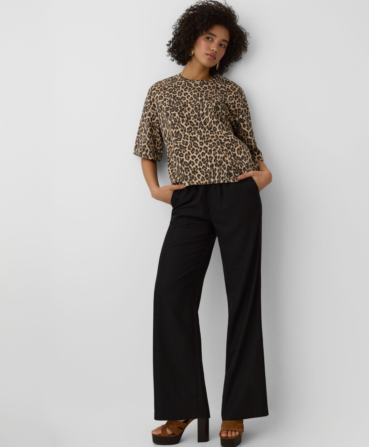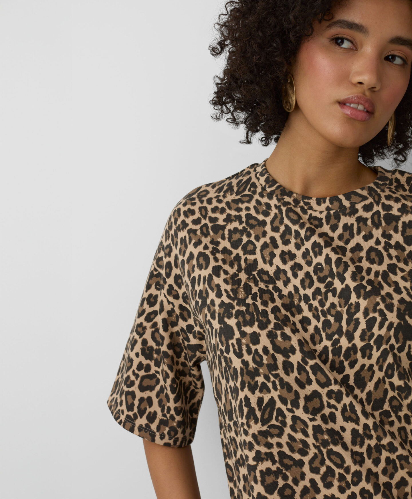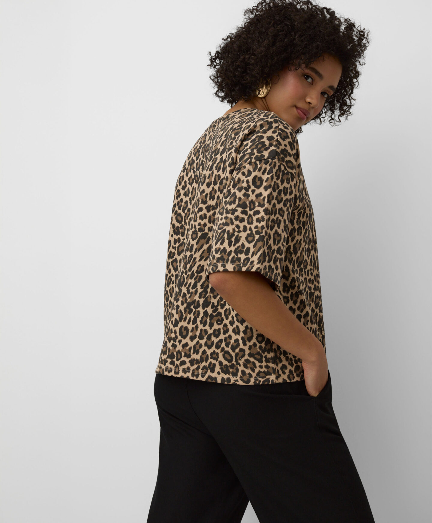 Ženska majica s leopard motivom savršena je za sve ljubiteljice odvažnih životinjskih motiva. Kraći, širok kroj sigurno će se svidjeti svakoj ljubiteljici ležernog stila. Izgleda sjajno u kombinaciji s biciklističkim i lepršavim hlačama ili trapericama.