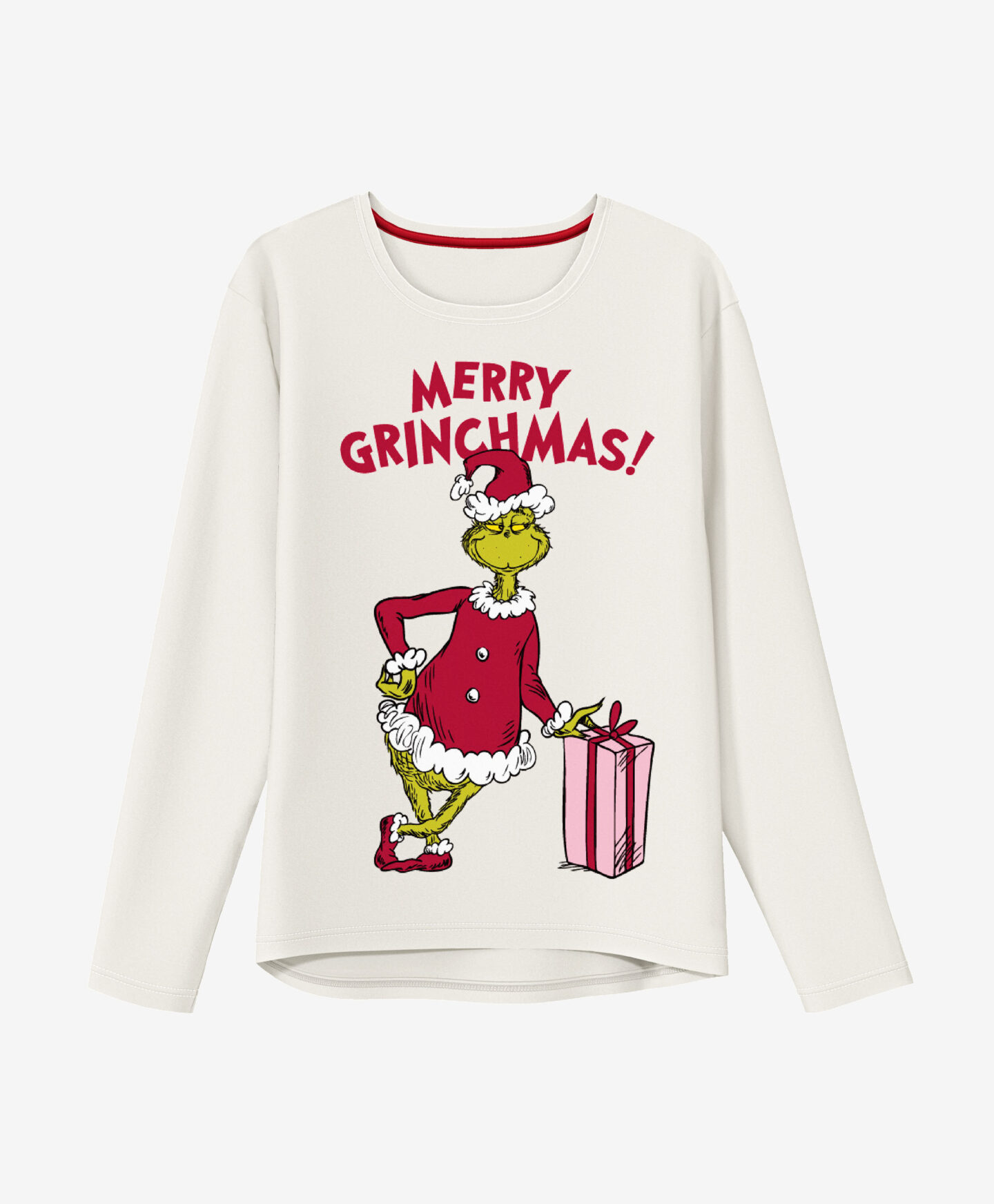 Ženska pidžama po Grinch licenci izrađena od 100% pamuka sastoji se od majice dugih rukava s motivom popularnog zelenog lika na prsima i hlača s blagdanskim motivom. Izrađena od prirodnih vlakana osigurava ugodan san tijekom jesenskih i zimskih noći. Odlična je ideja za poklon za svakoga tko voli opuštanje u udobnosti vlastitog doma.