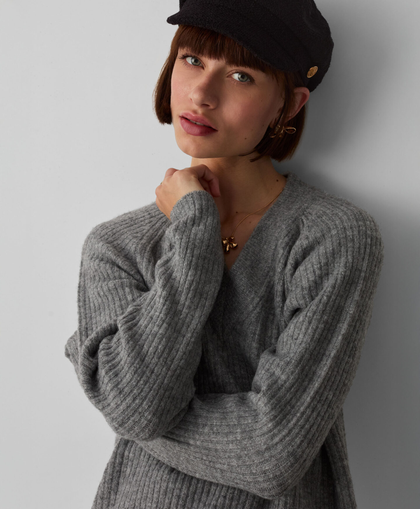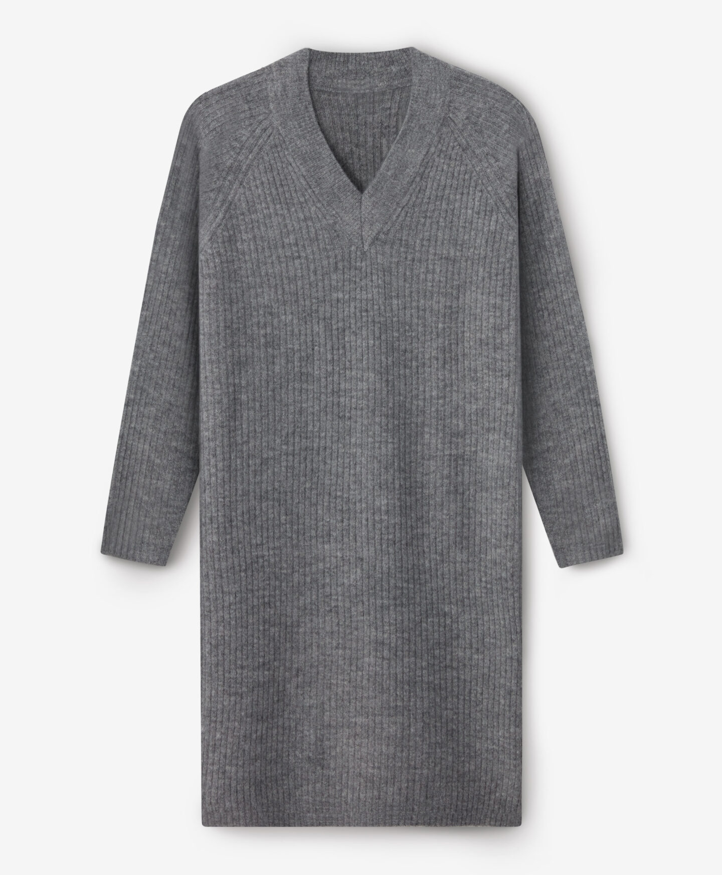 Ženska pletena haljina s V izrezom igrat će glavnu ulogu u mnogim jesenskim odjevnim kombinacijama. Duži kroj, prigušena boja i ženstveni izrez čine ovu haljinu prikladnom i za ured i za slobodno vrijeme. Savršeno pristaje uz tajice, hlače-tajice ili deblje najlonke, a u kombinaciji s čizmama do koljena ili gležnjačama stvara modernu i svestranu kombinaciju.